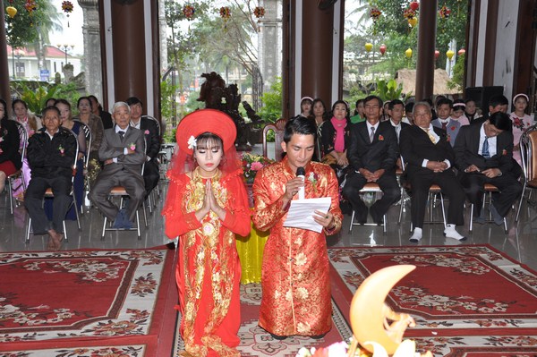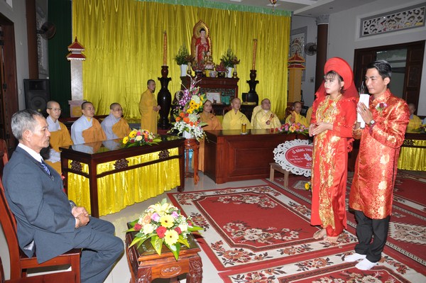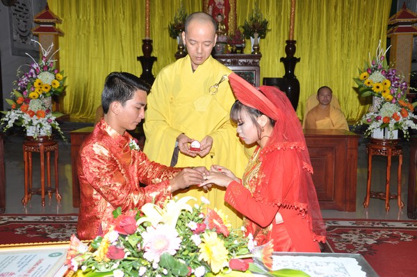 Đối trước Tam Bảo, đôi bạn phát nguyện chung sống hạnh phúc theo 5 nguyên tắc (ngũ giới) đạo đức cơ bản của Phật giáo.