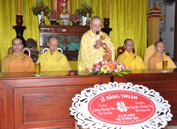 TT.Thích Phước Hưng, ban đạo từ, chỉ dạy cho đôi bạn trẻ hiểu về ý nghĩa của lễ hằng thuận, chân lý cao đẹp về đạo vợ chồng theo quan điểm nhà Phật.