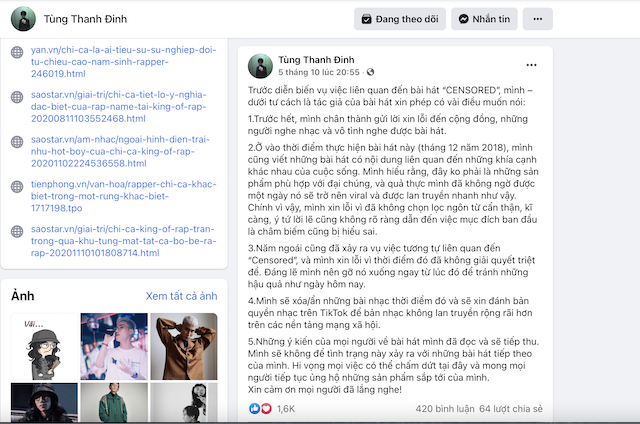 Rapper Chị Cả (tên thật là Đinh Thanh Tùng, sinh năm 1994, nổi tiếng trong cộng đồng hip-hop/underground) – chủ nhân ca khúc “Censored” đã thừa nhận đây là sản phẩm không phù hợp với đại chúng và chính anh cũng không ngờ có một ngày ca khúc sẽ trở nên viral (lan tỏa), tạo nên hệ quả xấu đến như vậy.
