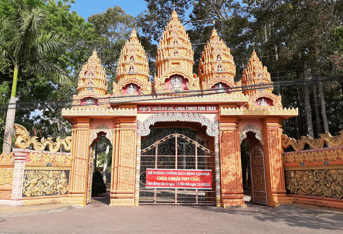 Chùa Chén Kiểu (xã Đại Tâm, huyện Mỹ Xuyên) là một trong những ngôi chùa rất nổi tiếng, trước đây mỗi ngày đón hàng ngàn lượt khách du lịch. Thế nhưng, những ngày này chùa hết sức tĩnh lặng, không đón khách tham quan, không họp ban quản trị, mà chỉ điện thoại và phát loa tuyên truyền về công tác phòng, chống dịch bệnh Covid-19.