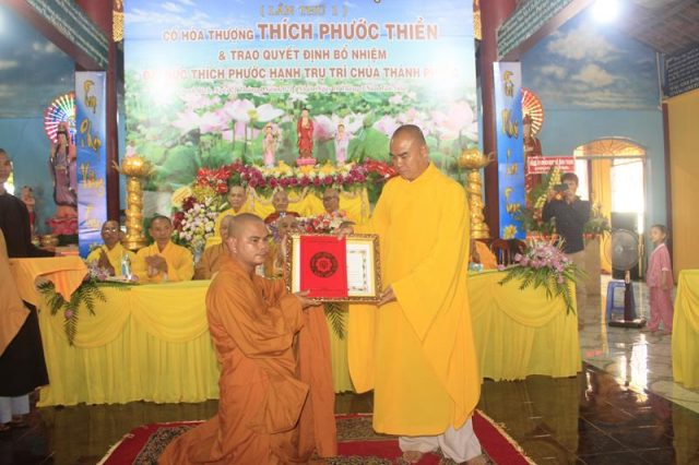 Nhân ngày lễ húy kỵ của cố HT. Thích Phước Thiền, thay mặt Ban Thường trực BTS Phật giáo tỉnh Đồng Tháp (huyện Thanh Bình), TT. Thích Minh Sơn đã tuyên đọc quyết định bổ nhiệm cho ĐĐ. Thích Phước Hạnh, thế danh Trần văn Thuận sinh năm 1988. Theo đó, TT. Thích Tĩnh Triệt trao quyết định bổ nhiệm trụ trì cho ĐĐ. Thích Phước Hạnh, đánh dấu ngôi chùa Thành Phước từ đây đầy đủ ba ngôi báu.