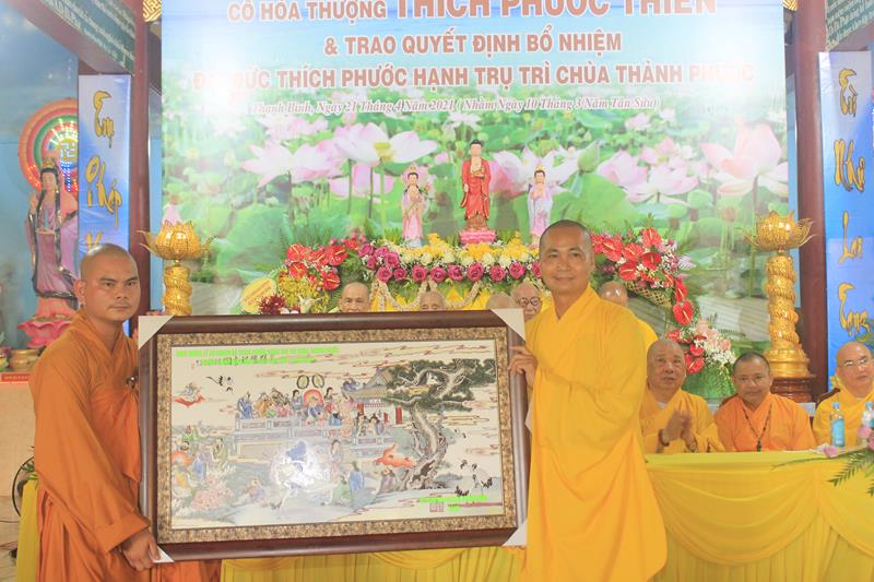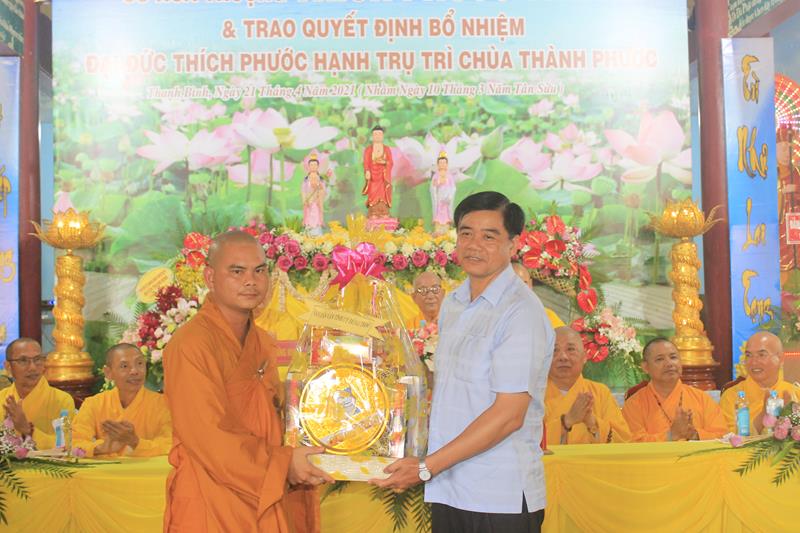 Dịp này, chư Tôn đức BTS GHPGVN tỉnh Đồng Tháp, Phật giáo huyện Thanh Bình và đại diện lãnh đạo chính quyền các cấp đã những lẵng hoa tươi thắm và các phần quà gởi đến chúc mừng, khích lệ tinh thần cho Đại đức Tân trụ trì trong sự nghiệp hoằng hóa độ sanh, phụng sự Đạo pháp và Dân tộc.