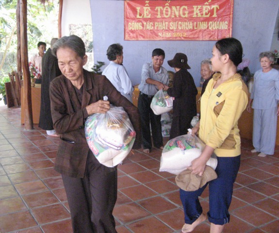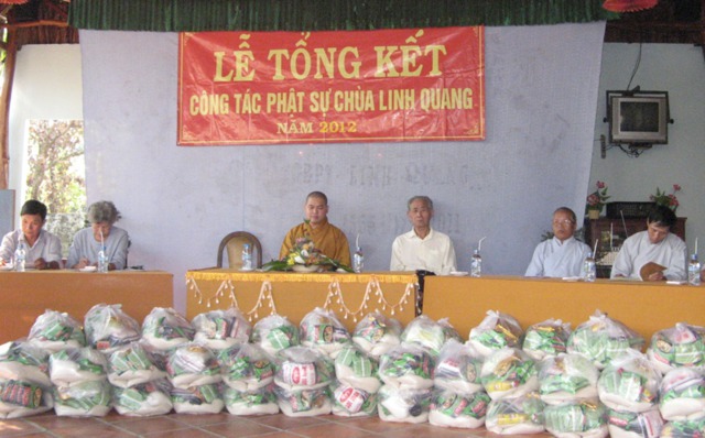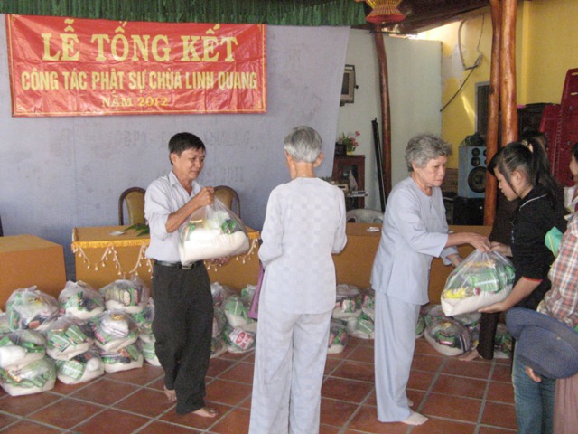 Nhân dịp xuân về, Ban từ thiện Chùa Linh Quang đã phát 70 phần quà cho các gia đình neo đơn, mỗi phần quà trị giá 120000đ gồm gạo, mì gói, nước tương, gia vị…