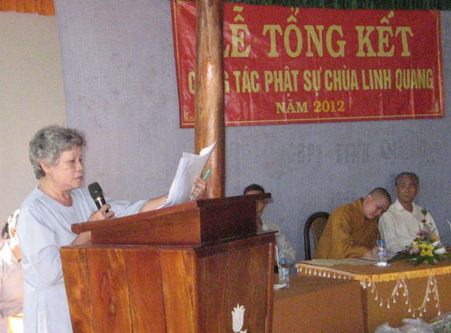 Trong buổi tổng kết Phật sự, đại diện các Ban: Hộ tự, Từ thiện, Học bỗng, Huynh trưởng GĐPT đã lần lượt báo cáo công tác thực hiện trong năm 2012 với những Phật sự nổi bật như sau: Đúc đại hồng chung có trọng lượng 1 tấn, dựng một nhà mát sau chùa có diện tích 100m2, làm 300m đường giao thông nông thôn, phát quà từ thiện 5 đợt với hơn 500 phần quà trị giá hơn 80 triệu đồng, hỗ trợ gần 20 suất học bổng cho học sinh nghèo với trị giá 20 triệu đồng, Gia đình Phật tử được duy trì với 60 đoàn sinh. Trong năm, Chùa đã tổ chức lễ quy y hàng trăm Phật tử, tổ chức các ngày Lễ lớn, các ngày vía trang nghiêm.