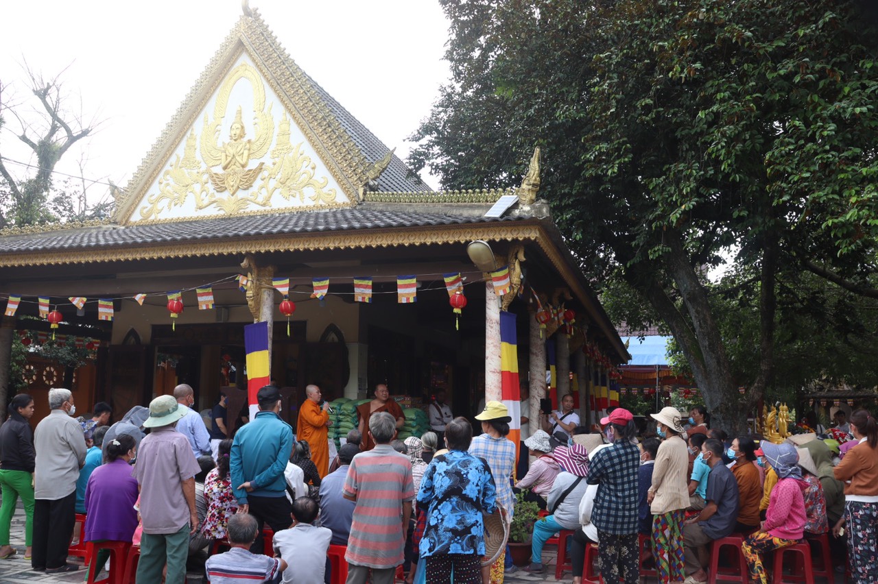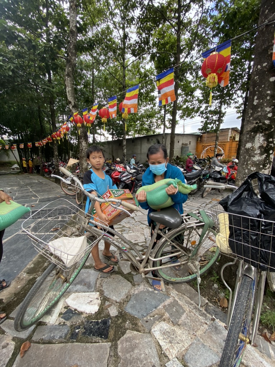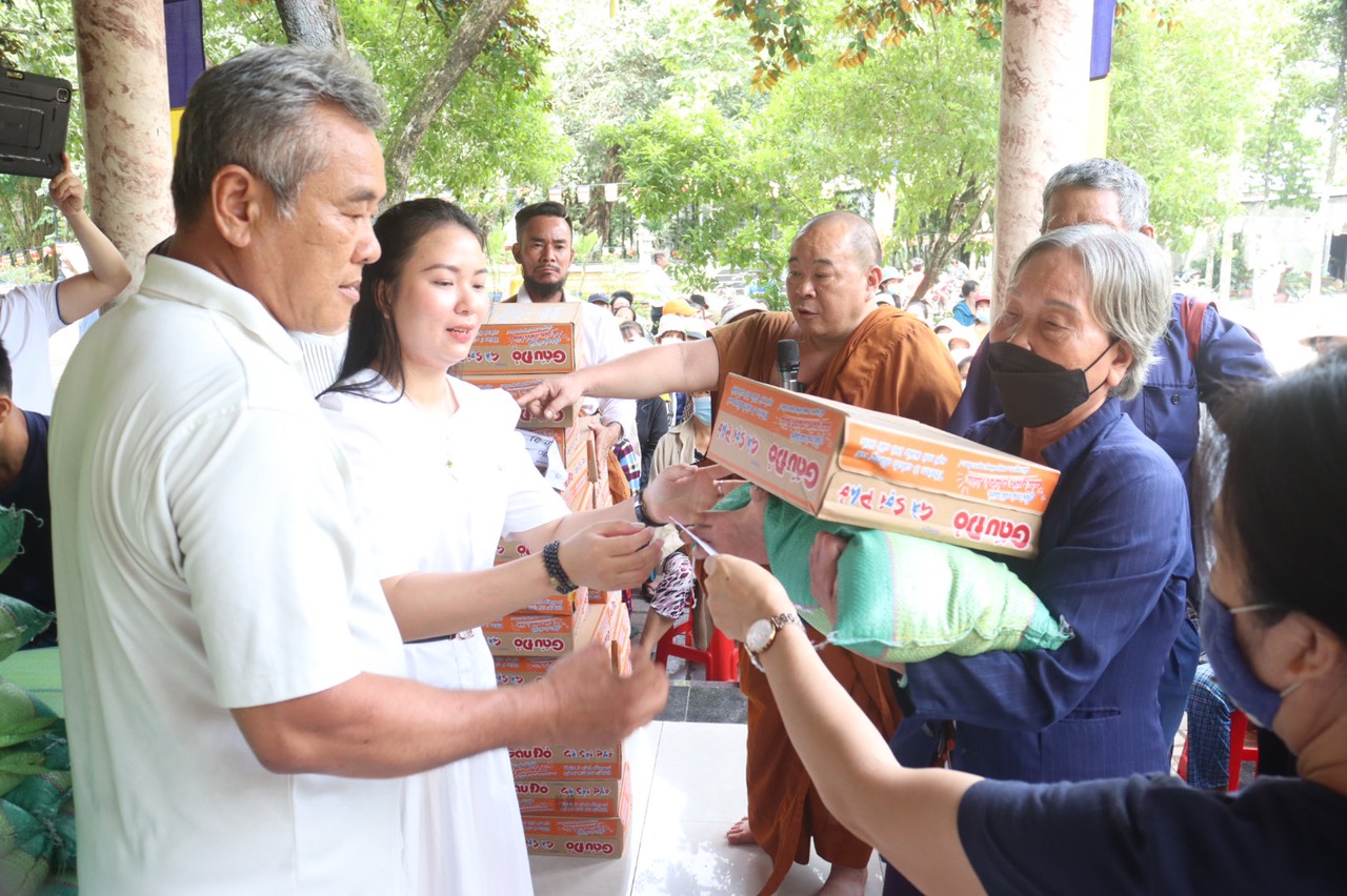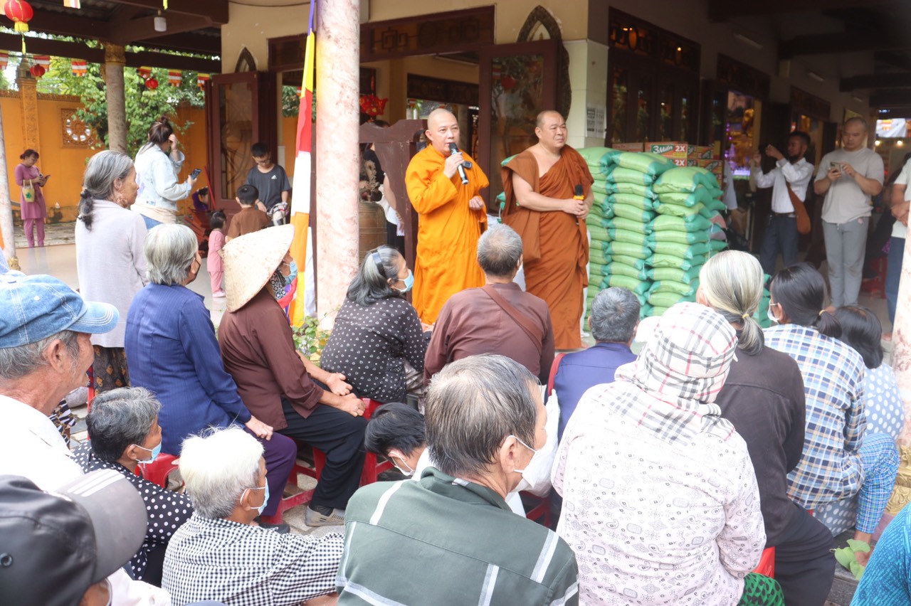 Dịp này, chùa Quảng Nghiêm đã trao 150 phần quà từ thiện đến bà con có hoàn cảnh khó khăn sau đại dịch covid 19.