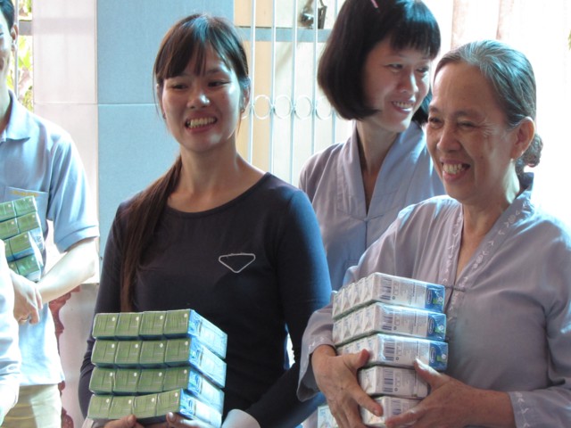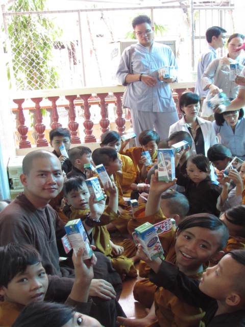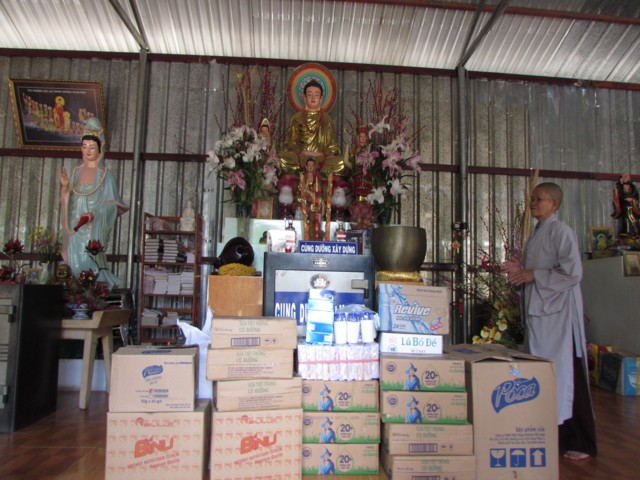 Đến thăm các em, ngoài tịnh tài, đoàn còn mang theo: gạo, mì gói, bánh, sữa, tã lót, thuốc, đồ chơi và quần áo cũ. Tổng số tiền mà đoàn trao tặng là hơn 20 triệu đồng.Theo Đại Đức Thích Thiện Đạt thì những tịnh tài và tịnh vật của các nhà hảo tâm trong và ngoài nước đã gửi về thông qua trang mạng xã hội facebook.