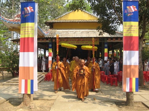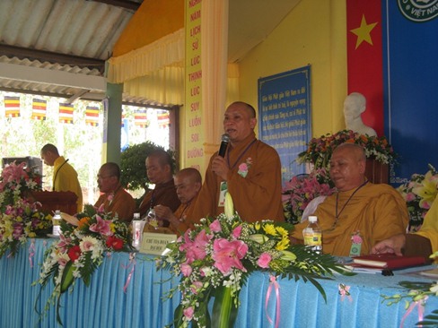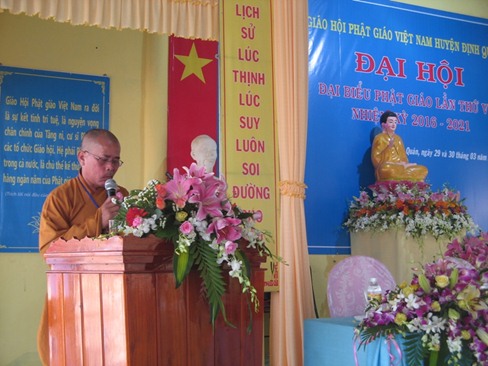 TT. Thích Minh Ngạn điều khiển Đại hội. TT Thích Đồng Ngạn, Trưởng BTS GHPGVN Huyện thông qua các tờ trình dự kiến nhân sự BTS khóa mới, Danh sách Ban Thường trực, Cử Đoàn Đại biểu tham dự Đại hội Đại biểu Phật giáo Tỉnh.