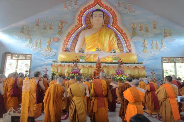 Năm nay, có 2.500 vị Tăng Ni từ nhiều nơi từ khắp mọi miền đất nước về tham dự, song hành còn có 4.000 Phật tử từ nhiều tỉnh thành gần xa đến dự lễ. Cũng như mọi năm – Chương trình bắt đầu từ lễ bái tam bái – Nhiễu Phật 03 vòng quanh chánh điện – Thí chủ dâng Y – Tác trình duyên sự – Tuyên ngôn Tăng sự – Cúng dường trai tăng.