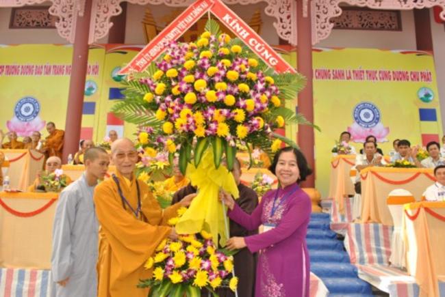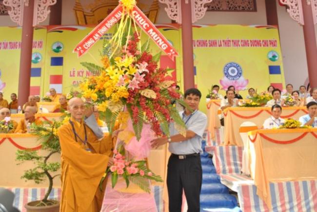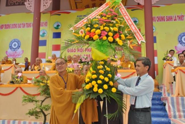 Tại buổi lễ, các cơ quan đơn vị, ban nghành trong tỉnh đã gửi lãng hoa, quà tặng chúc mừng thành quả 30 năm GHPGVN.