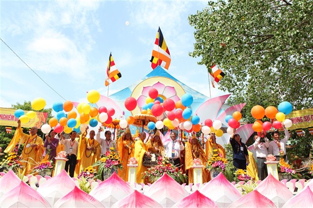 Trước khi kết thúc đại lễ, Chư tôn đức Tăng Ni, chính quyền địa phương, cùng các Phật tử có mặt tại buổi lễ đã làm lễ dâng hương, phóng sanh và thả bong bay cầu nguyện thế giới hòa bình, chúng sinh an lạc.