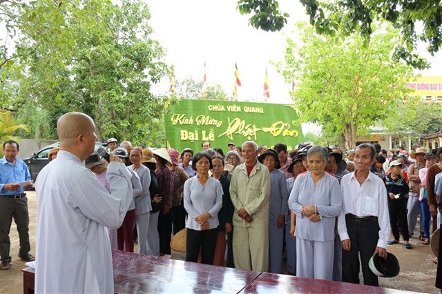 Quang lâm và chứng minh đại lễ có: Hòa Thượng Thích Huệ Tâm-Ủy viên BTS kiêm trưởng Ban Hướng dẫn Phật tử GHPGVN Tỉnh Đồng Nai, trưởng BTS GHPGVN Thị xã Long Khánh ,Hòa Thượng Thích Giác Quang- Chứng minh BTS GHPGVN Huyện Xuân Lộc; Hòa Thượng: Thích Thiện Cảnh: Phó ban Thường Trực BTS GHPGVN Huyện Xuân Lộc; Thượng Tọa: Thích Nguyên Thiết: Trưởng BTS GHPGVN Huyện Cẩm Mỹ; Thượng Tọa: Thích Pháp Đăng – Phó BTS kiêm Trưởng ban Pháp chế GHPGVN Huyện Cẩm Mỹ, trụ trì kiêm Trưởng BTC đại lễ Phật Đản Chùa Viên Quang cùng Chư tôn đức Tăng Ni các chùa trong và ngoài Tỉnh Đồng Nai.