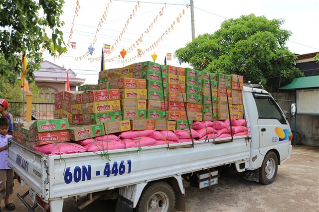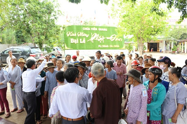 Buổi chiểu cùng ngày để hướng về ngày kỷ niệm 2640 năm đức Phật đản sanh, chư tôn đức Tăng và Phật tử chùa Viên Quang cùng các nhà hảo tâm, các mạnh thường quân đã tổ chức phát quà từ thiện cho các gia đình có hoàn cảnh đặc biệt khó khăn trên địa bàn huyện Cẩm Mỹ và xã Xuân Đông, tỉnh Đồng Nai.