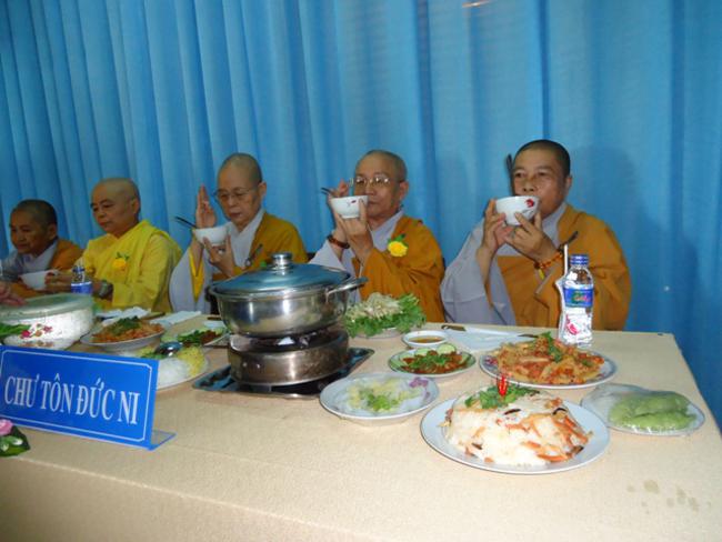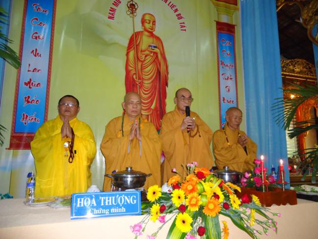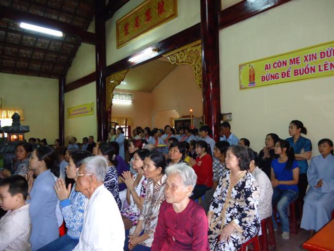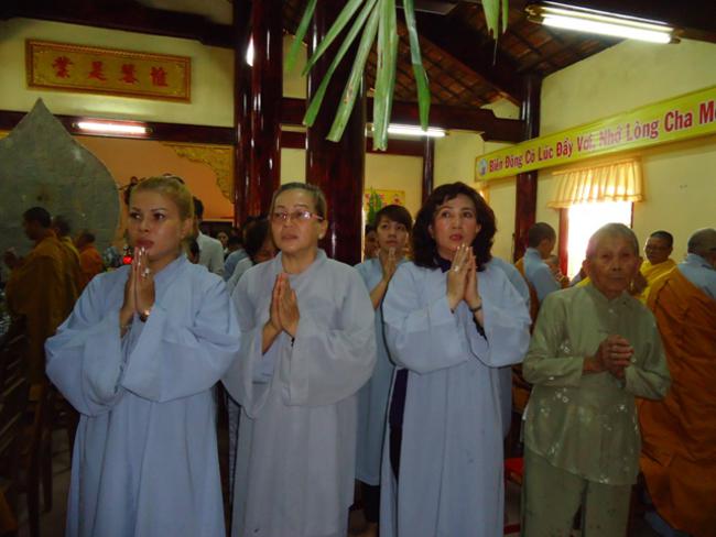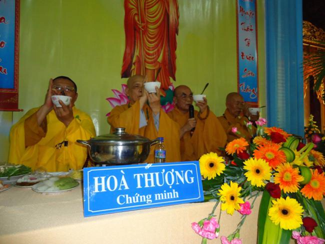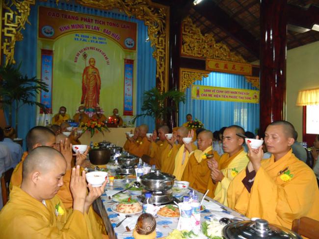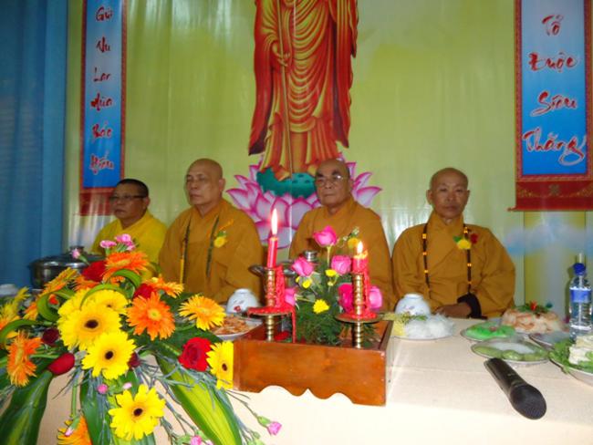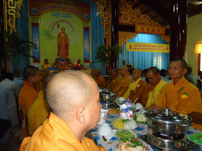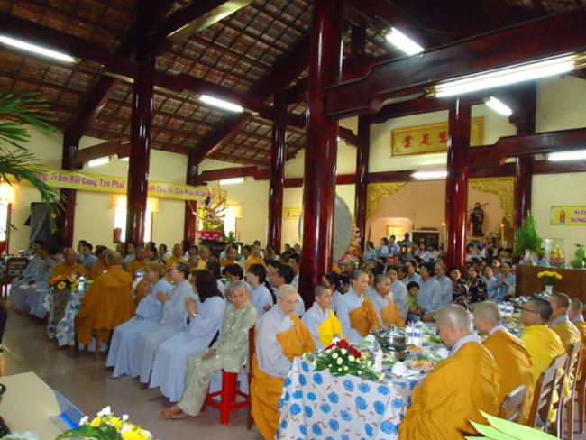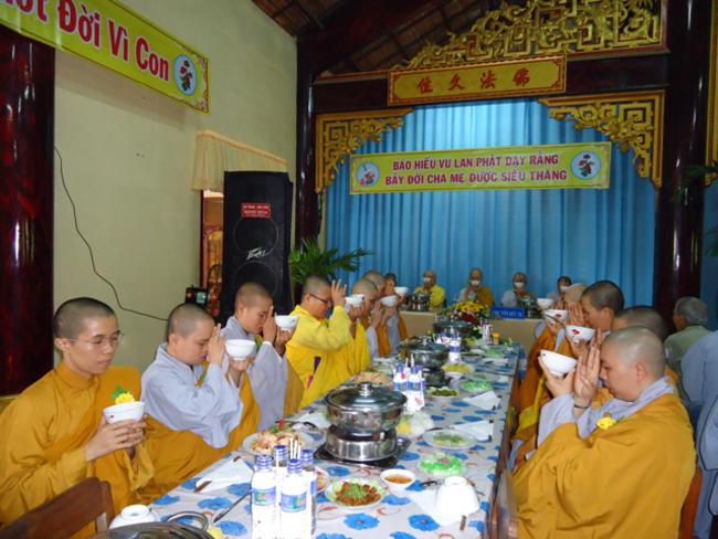 Ðồng thời mọi người tham dự cũng phát tâm rộng ra cho mọi đồng hương và các giới hữu tình cũng đều sanh tâm hoan hỷ, cùng nhau tinh tấn tu hành, chóng thành Phật đạo. Tiếp theo đó Chư tôn đức cử hành nghi lễ quá đường và Phật tử tác pháp dâng y cúng dường lên Chư tôn đức, sau đó là lễ chẩn thí âm linh cô hồn.