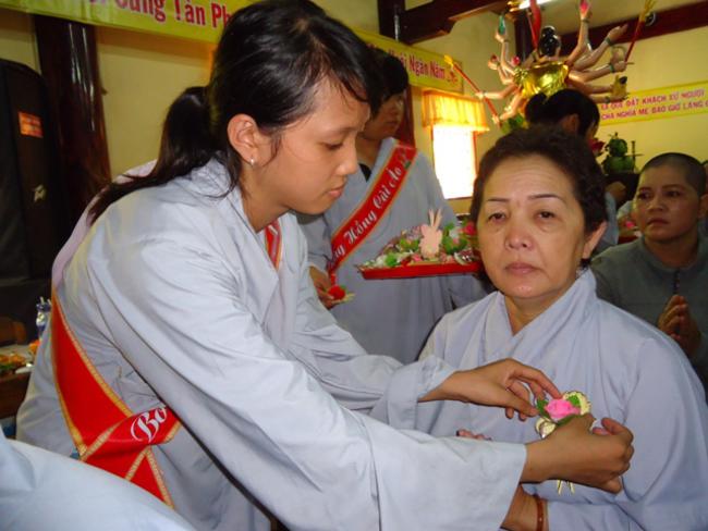 Tại buổi lễ cài bông hồng mọi người được lắng nghe huấn từ của Hòa Thượng Thích Kiến Tánh Buổi lễ được diễn ra thật tràng nghiêm, cài hoa hồng cho chư Tôn Ðức Tăng Ni cùng mọi người tham dự. Việc cài hoa hồng cũng nói lên sự cung kính từ thân người đối diện với mình. Những ai còn mẹ sẽ được cài hoa hồng thắm ngụ ý chúc thọ bậc cao niên, trưởng thượng và mừng người trực diện thường được vui vẻ với từ thân. Những ai mất mẹ sẽ được cài hoa hồng trắng với thành ý nguyện cầu người quá vãng được thanh thoát tiêu diêu nơi Lạc Quốc.