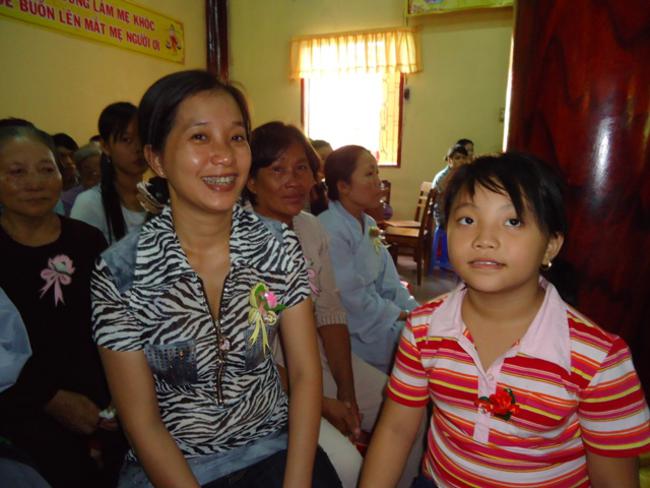 Cài đóa hoa hồng cho nhau thầm nhắc nhở hãy tác tạo phước duyên, để hồi hướng công đức cho kẻ còn người mất đều được ân triêm phước huệ.