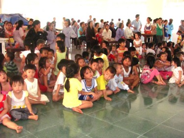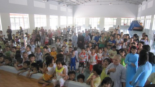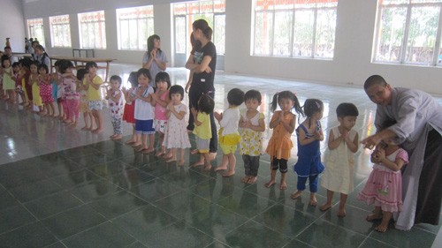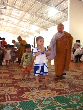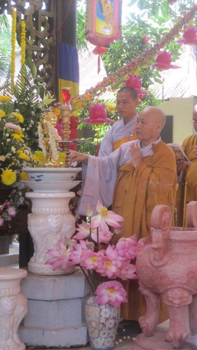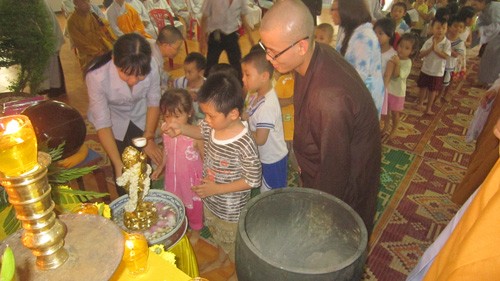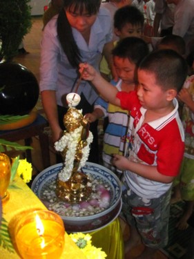 Với tâm hồn trong trắng của trẻ thơ, các cháu được hướng dẫn tắm Phật và biểu diễn văn nghệ kính mừng Đức Từ Phụ giáng trần thật là cảm động, có cháu còn ngây thơ nói với sư bà rằng “Chắc ông Phật nhỏ nóng lắm nhỉ nên phải giội nước?”.