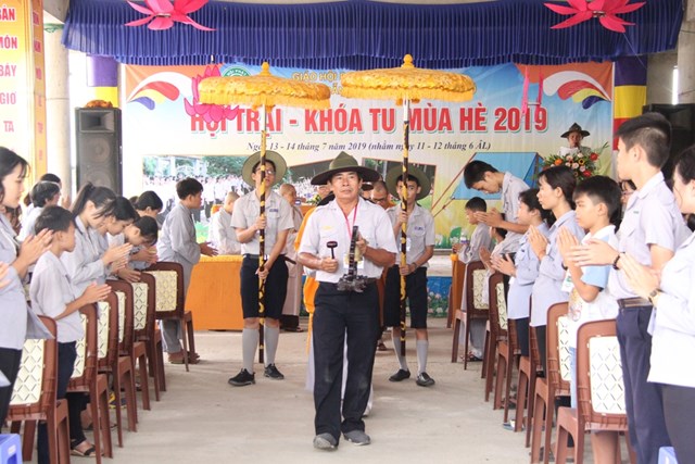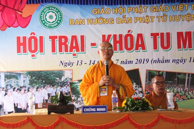 Đại đức Thích Quảng Giãi đã khai mạc trại: “Một năm được khởi đầu từ một mùa Xuân. Một đời người khởi nguồn từ tuổi trẻ. Tuổi trẻ là mùa xuân của nhân loại”. Bất cứ thời đại nào thanh thiếu niên cũng là mầm xanh tương lai của tổ quốc và dân tộc, phật pháp cũng không ngoại lệ… Ban Hướng dẩn phật tử Huyện Tân Phú nhiều năm qua đã tổ chức các khóa hội trại khóa tu mùa hè dành cho thanh thiếu niên phật tử trẻ tại huyện nhà ngõ hầu không ngoài ý niệm giáo dục và chuyển hóa con người trở nên hoàn thiện, đặc biệt là thế hệ trẻ và đây cũng là bản hoài của mười phương ba đời chư Phật cũng như chư vị Tôn túc lãnh đạo giáo hội…”