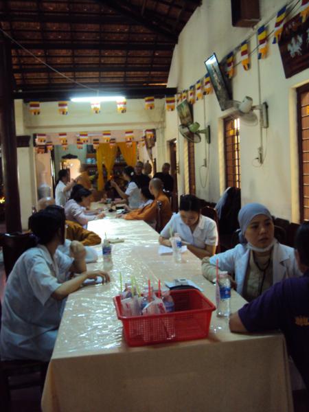 Đoàn đã đến đãnh lễ, cúng dường tịnh tài, đồng thời thăm khám sức khỏe và cúng dường dược phẩm, cho chư Tăng Ni tại 2 trường hạ chính của tỉnh Đồng Nai là Long Thiền và Hoàng Ân, với tổng trị giá khoảng 35 triệu đồng. Đoàn vinh hạnh được sự chứng minh của TT.Thích Huệ Hiền – Phó ban trị sự Tỉnh hội PG Đồng Nai – trụ trì Tổ đình Long Thiền , cùng sự chứng minh của NS.Thích nữ Huệ Tâm – Trưởng ban từ thiện Tỉnh hội PG ĐN – trụ trì chùa Hoàng Ân.