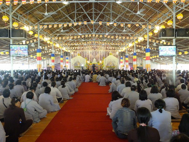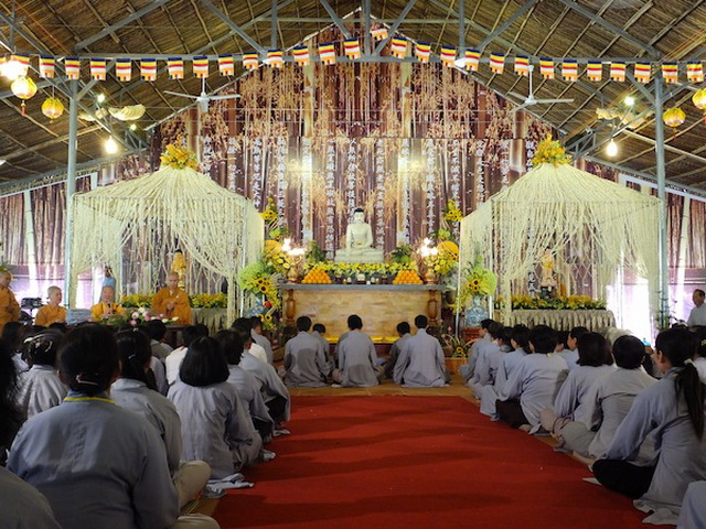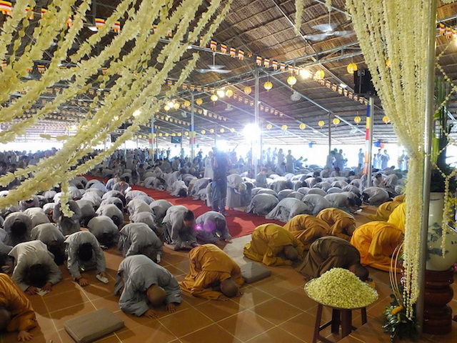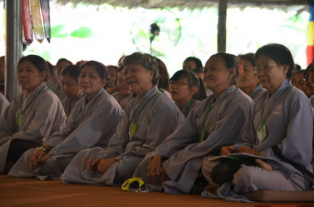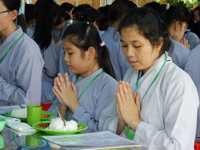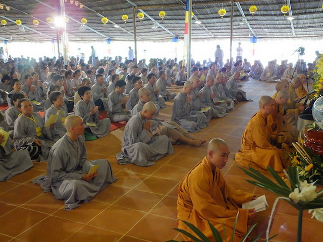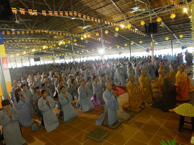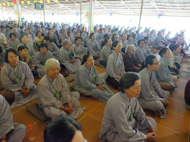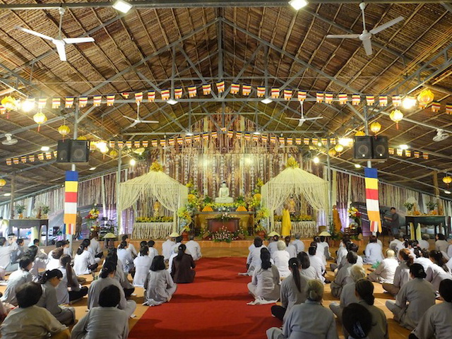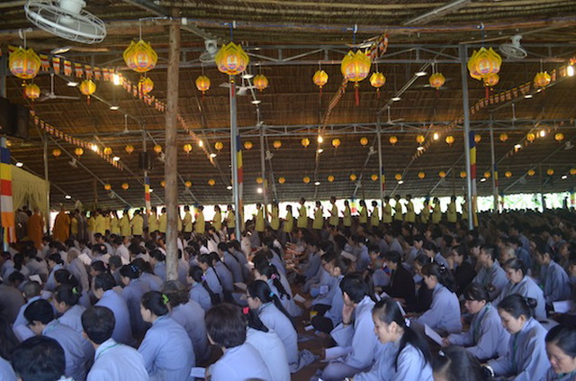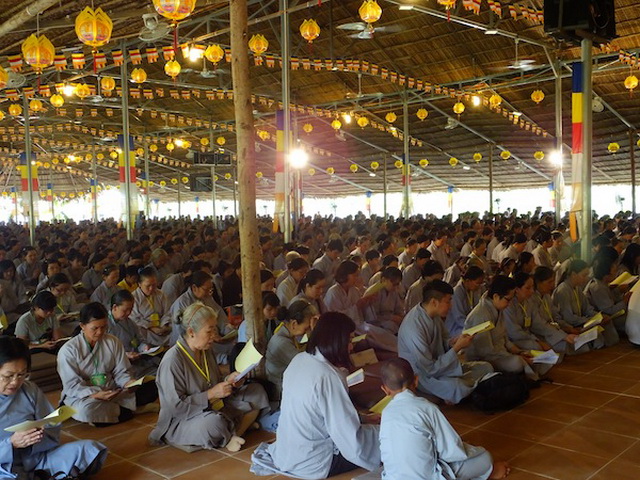 Hành giả tham dự thời công phu chiều trước khi kết thúc một ngày huân tu tràn đầy hỷ lạc.