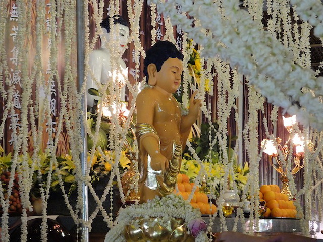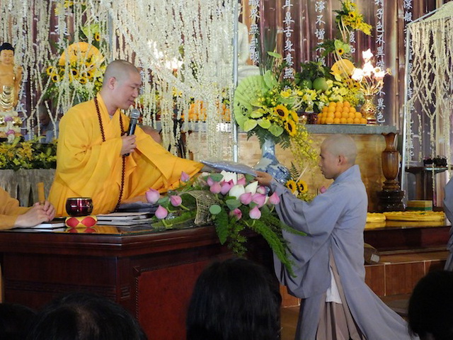 Sau lễ tắm Phật, hành giả tham dự thời thuyết giảng của Thầy Trụ trì – TT. Thích Thiện Thuận qua chủ đề “Vì sao tôi đợi?”. Trong cuộc sống, có nhiều điều chúng ta đợi một dịp đặc biệt nào đó mới thực hiện dự định của mình. Nhưng có phải lúc nào chúng ta cũng thực hiện dự định như mong muốn Không? vì ta không biết sẽ đợi bao lâu và vô thường không đợi một ai, sẽ đến bất cứ lúc nào. Cho nên, những gì là thiện nghiệp có lợi ích cho người thân, cho cộng đồng thì hãy nắm lấy cơ hội làm ngay, không để ngày mai phải hối tiếc ray rứt cả cuộc đời. Sau thời pháp thoại, hành giả dùng cơm quá đường và chỉ tịnh.