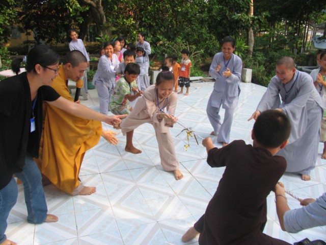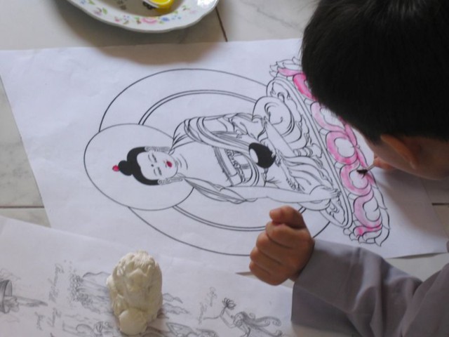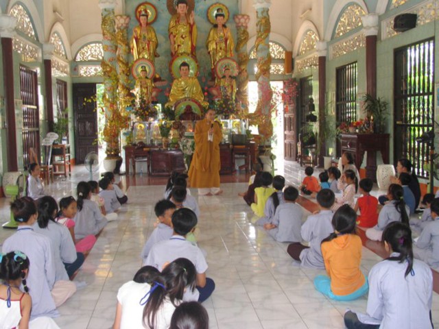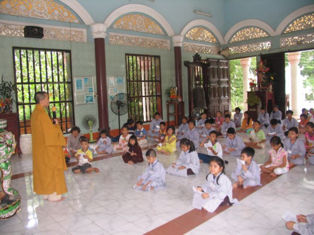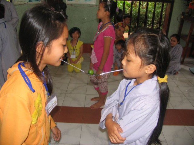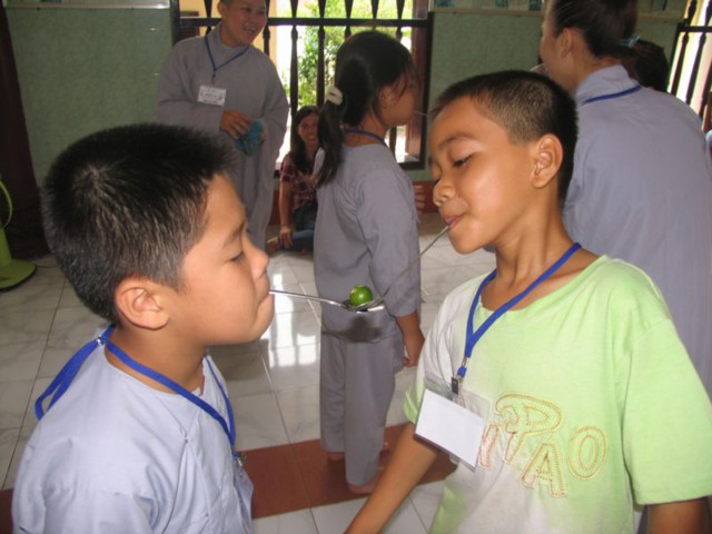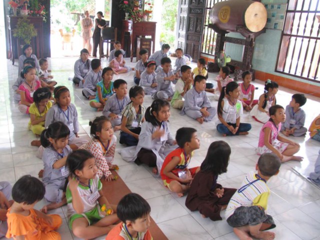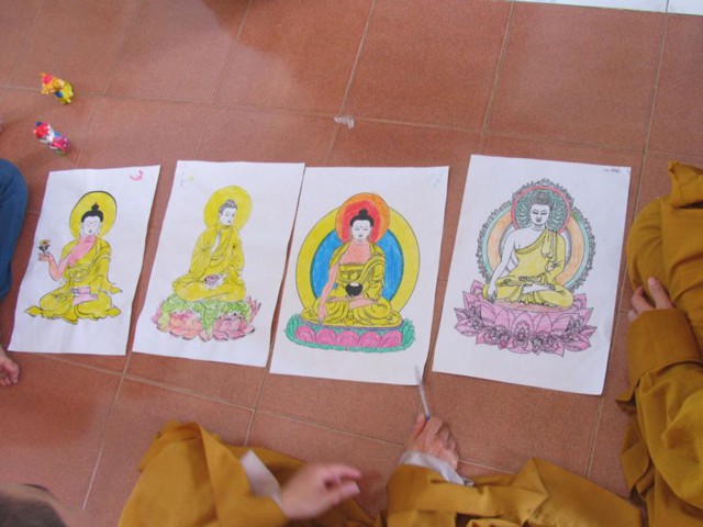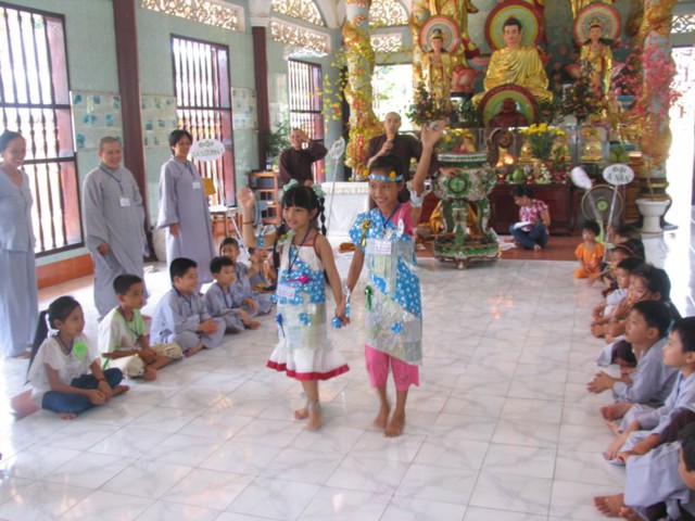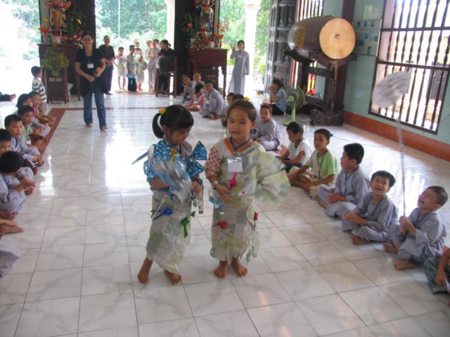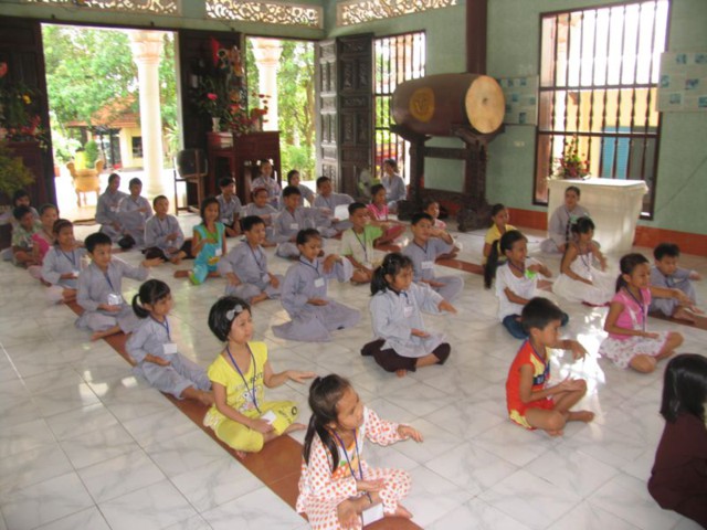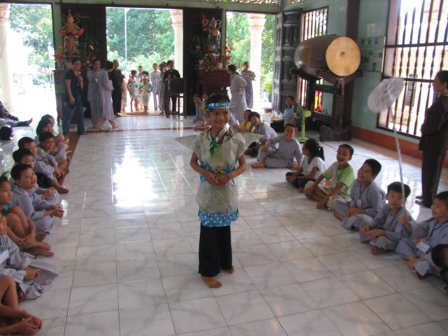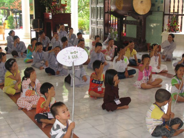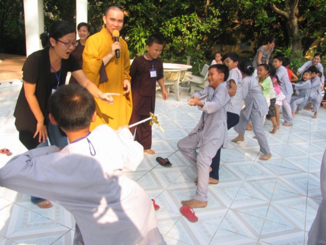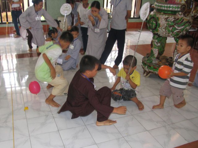 Không những thế, các bé còn được làm quen với những ca khúc Phật giáo như “niềm an vui”, “hôm nay về đây”; rèn luyện kỹ năng thẩm mỹ, hội họa qua cuộc thi vẽ tranh, tô tượng; rèn luyện tính cẩn thận qua các cuộc thi nhanh và khéo, “giọt nước chánh niệm”; rèn luyện thể lực bởi trò chơi kéo co; rèn luyện sự sáng tạo qua cuộc thi “thời trang nhà chùa”,…