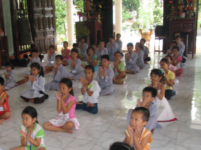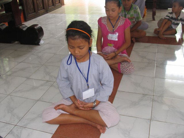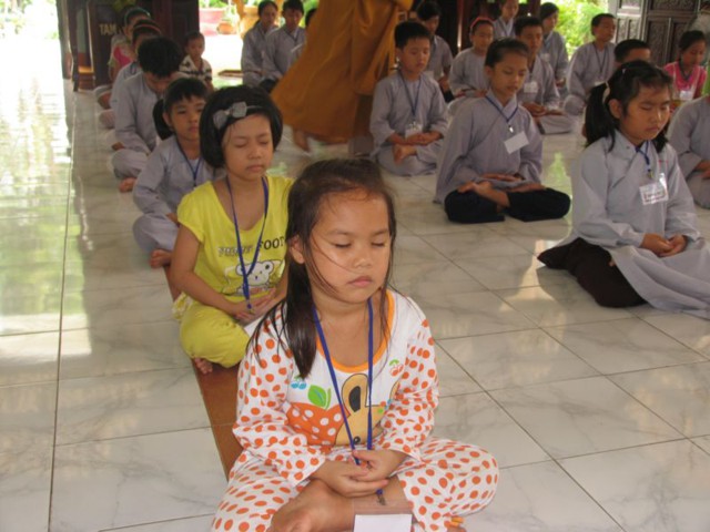 Đến với khóa tu, các bé được học hỏi về các nghi thức thông dụng trong Phật giáo như cách chắp tay, lễ Phật, tụng kinh, niệm Phật, kinh hành, thọ trai, tĩnh tọa,…