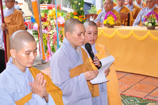 Buổi lễ khép lại sau lời giáo huấn của HT. Thích Quang Đạo Thành viên HĐCM, phó BTSPG – Trưởng ban Hoằng Pháp tỉnh Đồng Nai, Trụ trì Chùa Phước Viên. Tiếp theo môn đồ pháp quyến tác bạch cúng dường trai tăng tại giảng đường Chùa Bảo Lâm.
