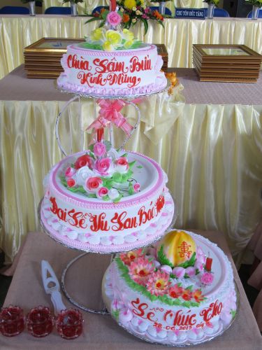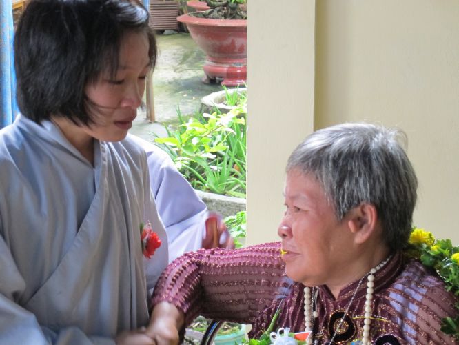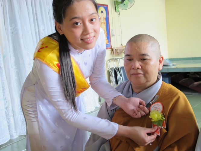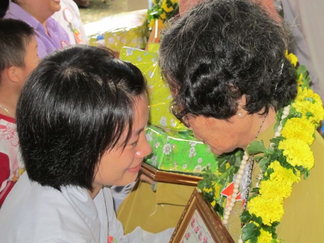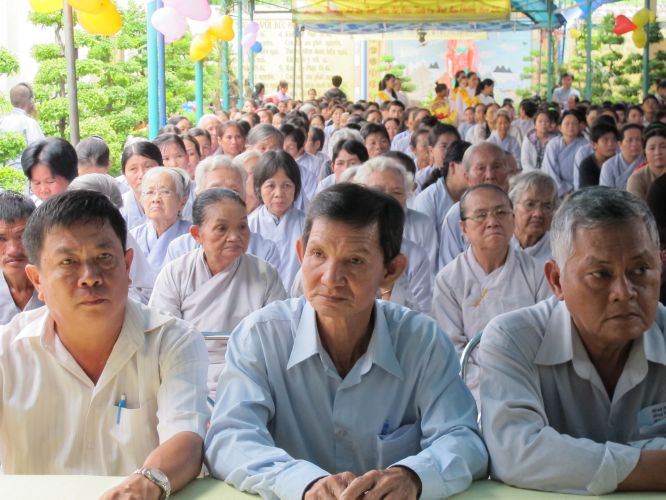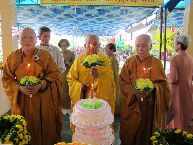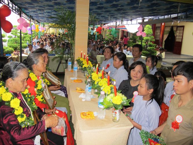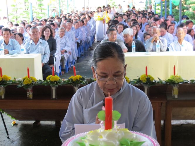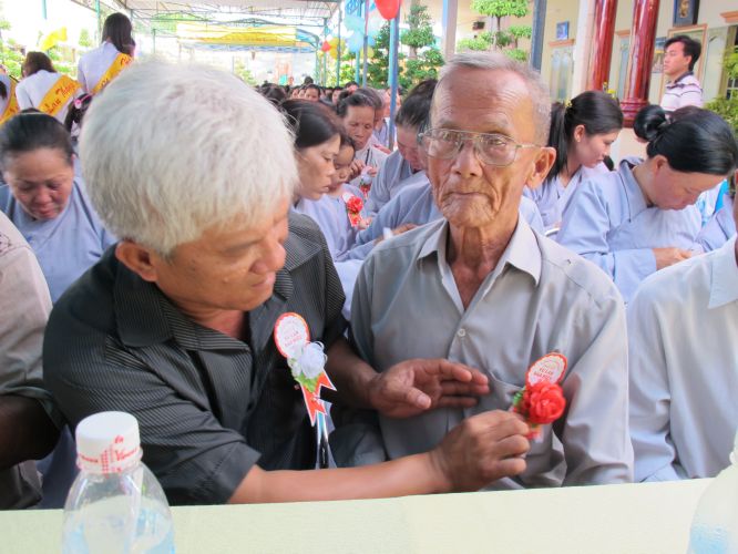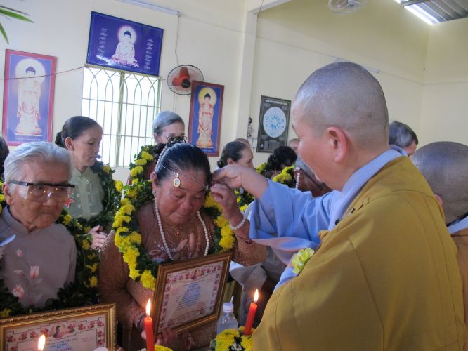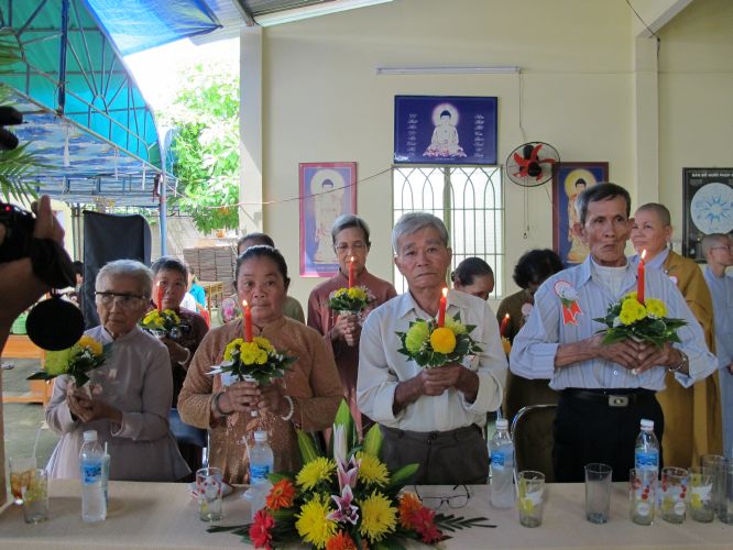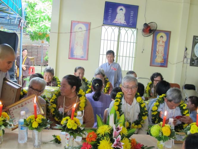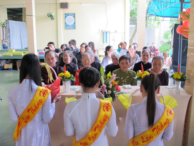 Chư tôn đức cũng đã trao những vòng hoa vạn thọ cho quý vị, gửi điều ước phước thọ mãi miên trường. Tại buổi lễ, chư tôn đức và sư cô trụ trì đã trao rất nhiều quà, lộc tặng mừng tuổi thọ các cụ. Mời các cụ thổi nến, cắt bánh sinh nhật. Giờ phút ấy cũng là thời khắc đề con cháu thể hiện tấm lòng hiếu để của mình, dâng những phần quà hiếu hạnh lên ông bà, cha mẹ. Vật mọn tuy đơn sơ, nhưng tấm lòng lại vô cùng ý nghĩa.