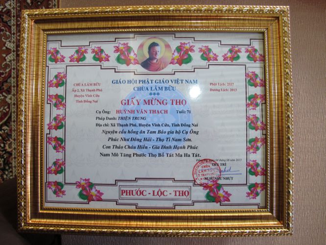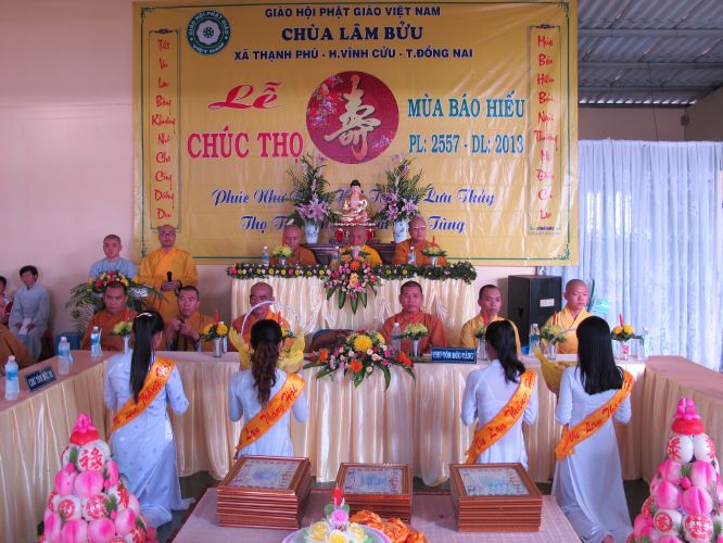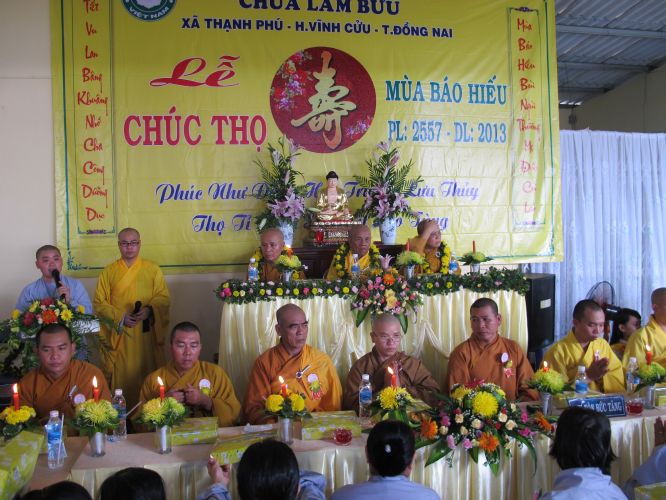 Sáng 5/8/2013, tại chùa Lâm Bửu, xã Thạnh Phúc, huyện Vĩnh Cửu, tỉnh Đồng Nai do NS. TN Như Nhựt trụ trì đã long trọng tổ chức đại lễ Vu Lan báo hiếu với các chương trình liên hoàn; Lễ cài hoa hồng, chúc thọ người cao tuổi, dâng cúng pháp y và cúng dường trai tăng.