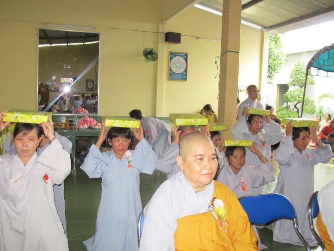 Cũng trong ngày chư Phật đại hoan hỷ này, rất nhiều Phật tử đã phát tâm dâng cúng pháp y lên chư tôn thiền đức tăng ni, như là cơ hội để gieo trồng phước đức, bồi bổ cho hạt bồ đề thêm nảy nở xinh tươi.