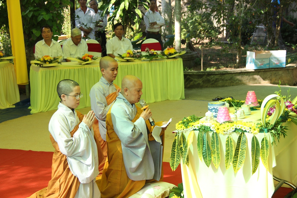Ni sư trụ trì Chùa đã trình bày nguyện vọng trùng tu lại ngôi chùa để xứng tầm phát triển chung của địa phương và để có nơi rộng rãi, nghiêm trang, thanh tịnh thờ ngôi tam bào và nơi tu học cho Phật tử. Thượng tọa Thích Huệ Khai ban đạo từ, tán thán công đức của Chư Ni và Phật tử địa phương đã gìn giữ ngôi chùa từ lúc khai sơn, việc trùng tu lại chùa cần sự chung sức chung lòng của Phật tử gần xa mới hoàn thành sở nguyện.