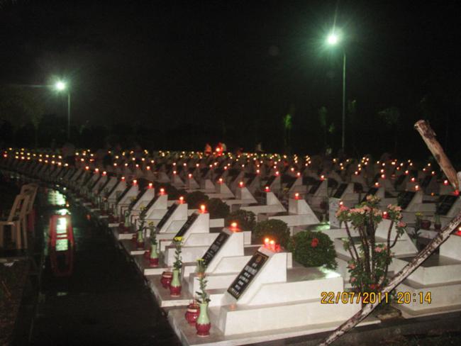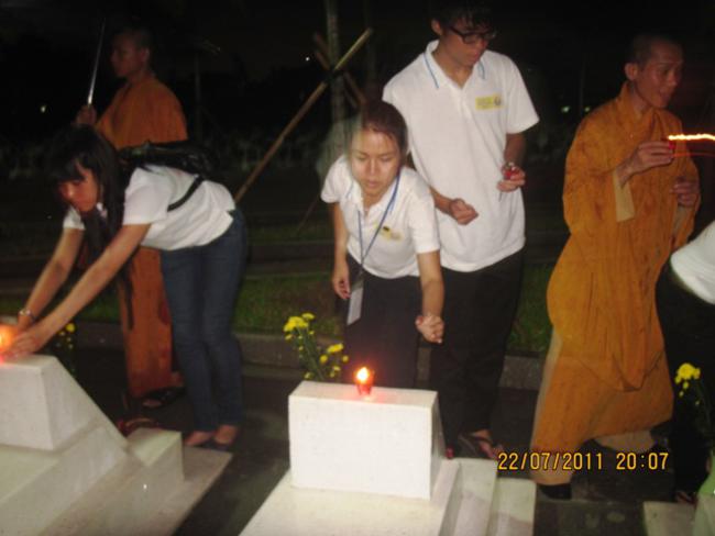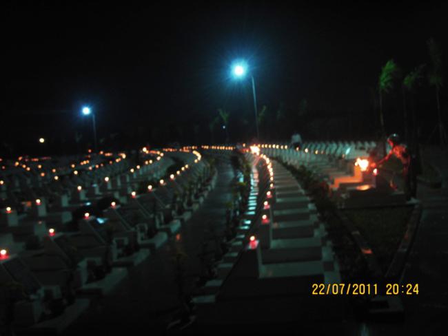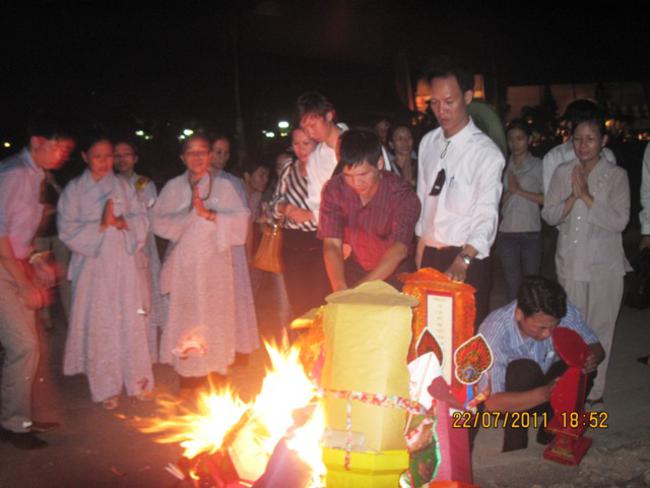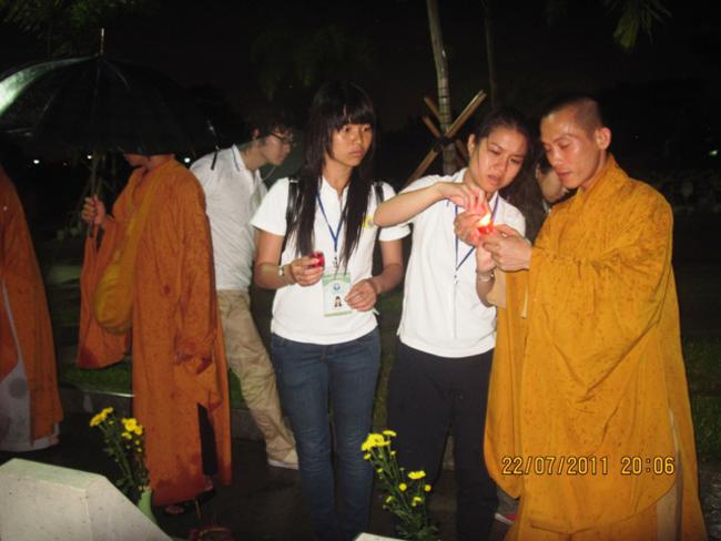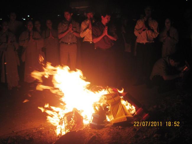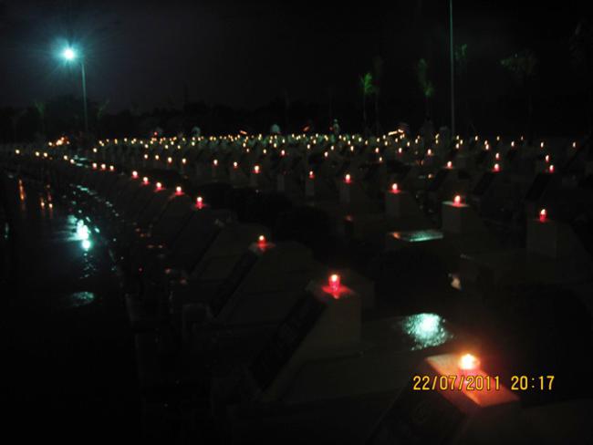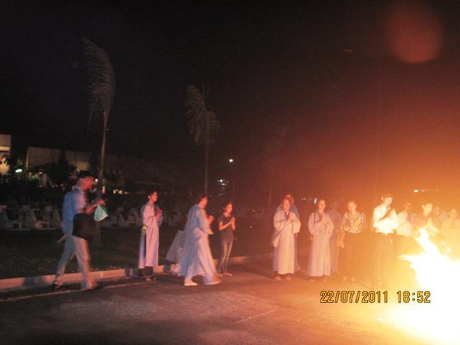 Đúng 30 phút sau trời ngừng mưa và Ban tổ chức đã tiếp tục khơi đăng lần lượt thắp lên từng ánh lửa sưởi ấm cho các anh, sự chiến đấu hi sinh anh dũng, bất khuất, các anh đã nằm xuống cho quê hương độc lập nở hoa, giờ đây các anh thật vui sướng và hạnh phúc thay! với bao tâm hồn yêu thương gởi đến các anh trong đêm lễ cầu siêu này. Dù ở thế giới nào chắc có lẽ các anh vẫn về đây đoàn viên bên mái nhà thân thương ấm áp tình người hôm nay.