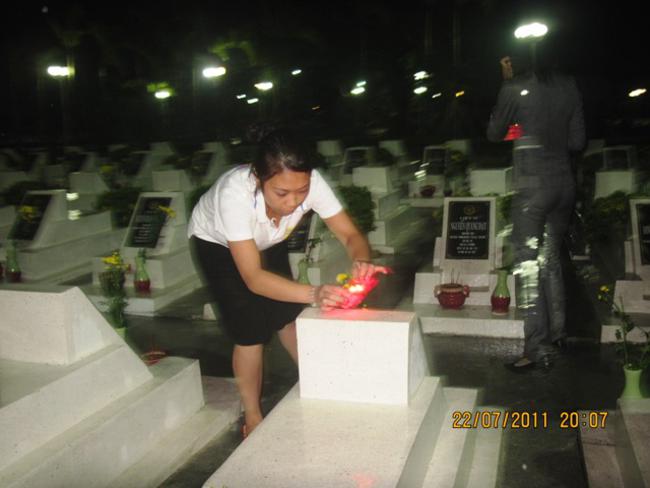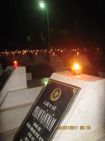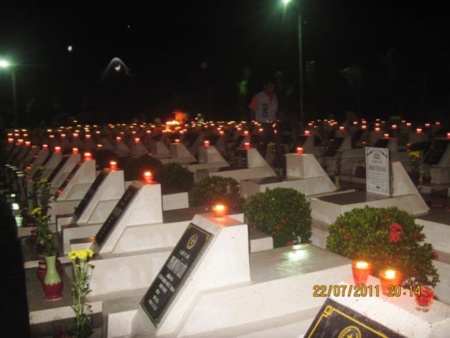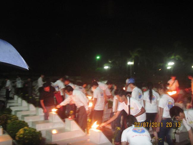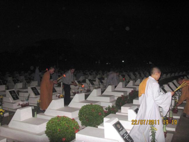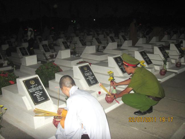 Cả hội chúng như lặng người nghe từng giọt mưa chảy lộp độp trên nóc đài tưởng niệm TỔ QUỐC GHI CÔNG, từng hạt mưa lăn dài trên bia mộ như gột rửa sạch những vết bụi rêu xanh của tháng ngày nắng gió, làm mát dịu cõi lòng các anh.