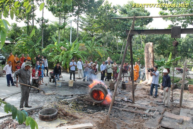 Do nhu cầu của Phật tử thập phương – đầy đủ nhân duyên, gia đình thí chủ Lê Thị Giàu (TP.HCM) phát tâm cúng dường đúc đại hồng chung lớn nặng 1,2 tấn và một chung nhỏ nặng 500kg do nghệ nhân Nguyễn Văn Thuận (TP.Huế) đảm trách.