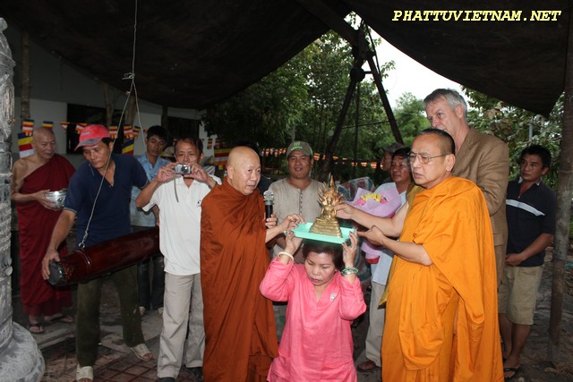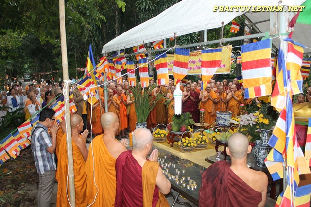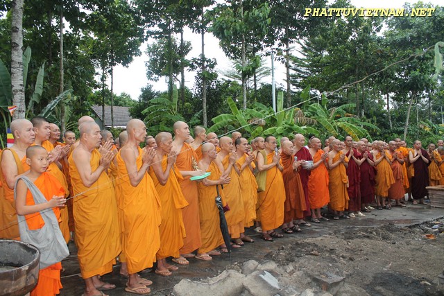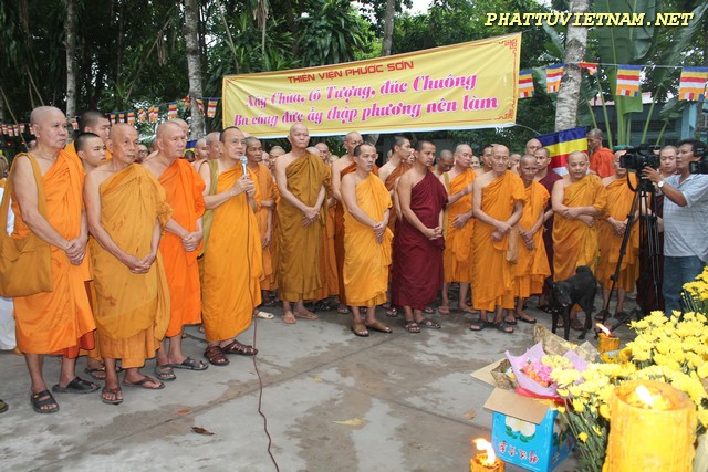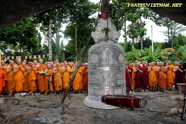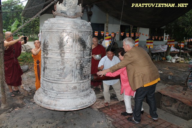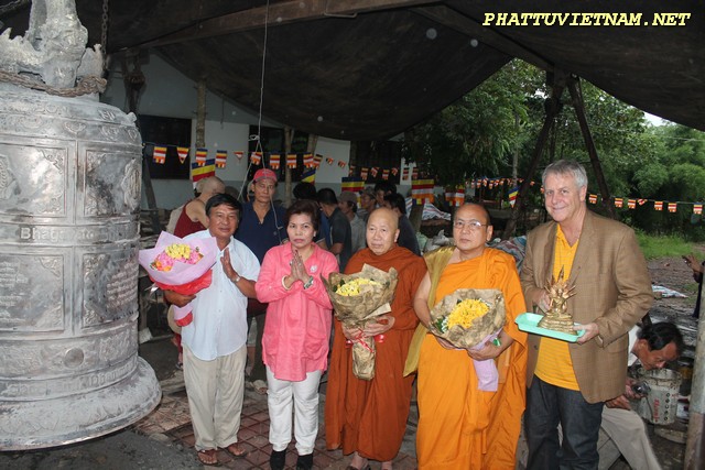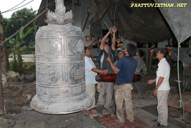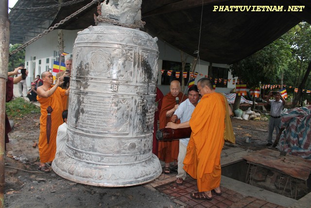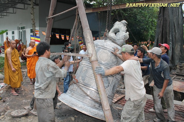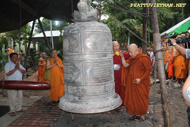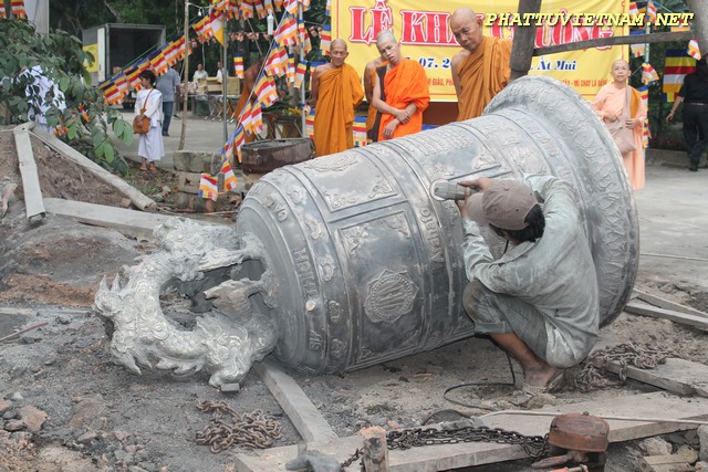 Hơn 20 tiếng đồng hồ hoàn thành công đoạn đúc đại hồng chung, chiều ngày 15/07/2015 (01/06 al) – HT.Thiền Sư Khánh Hỷ, TT.Thích Bửu Chánh cùng chư Tăng – Tu Nữ và qúy Phật tử trang nghiêm lắng lòng thanh tịnh cử hành nghi thức lễ bái tam bảo – niêm hương bạch Phật – khóa kinh cầu an chúc phúc – sái tịnh đồng chính thức khai chuông.