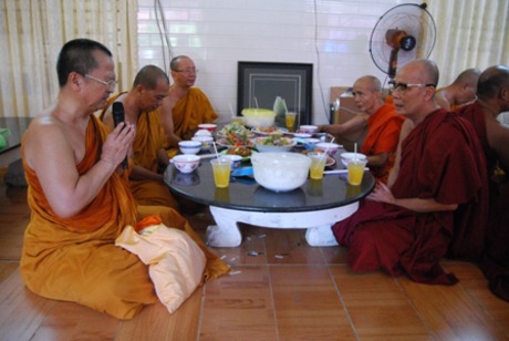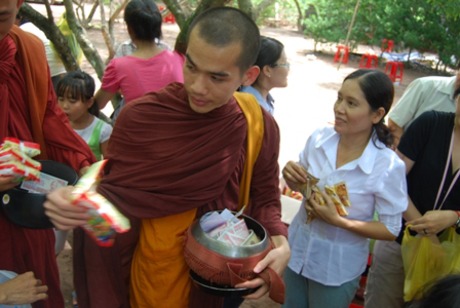 Sau đó, các Sư thực hiện nghi thức cổ phật khất thực, một nghi thức rất cao đẹp được truyền thừa từ Đức Thích Ca Mâu Ni mà ngay nay chỉ có hệ phái Phật giáo Nam tông còn hành theo và phát huy.