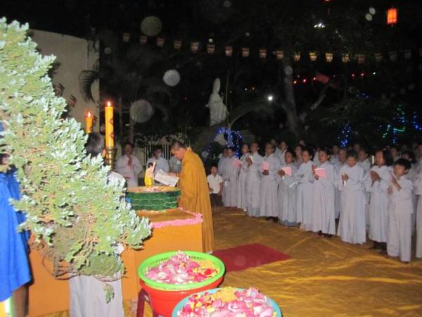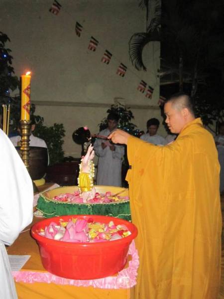 Nghi thức tắm Phật diễn ra trang nghiêm dưới sự chủ trì và hướng dẫn của ĐĐ.Thích Huệ Trí cùng đông đảo Phật tử và người dân tham dự.