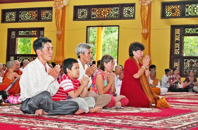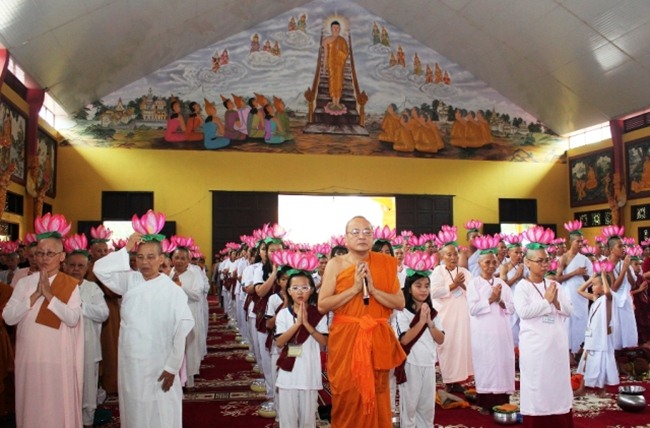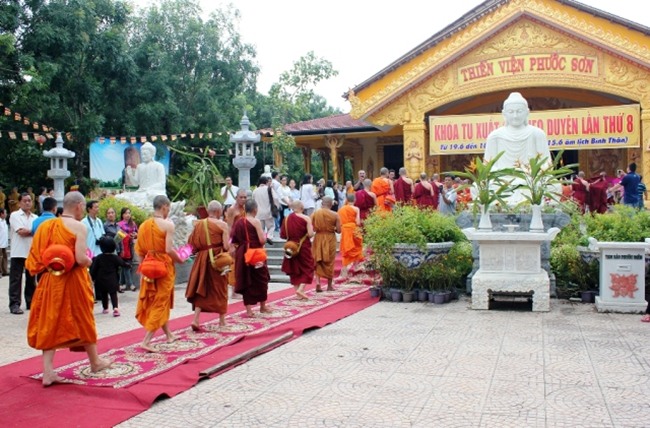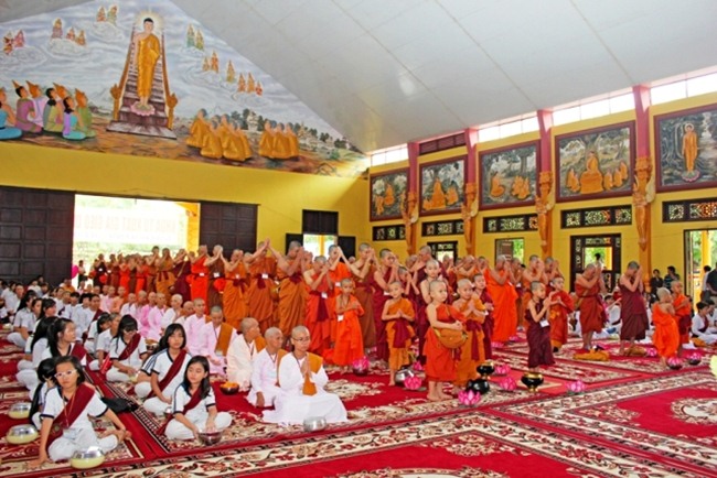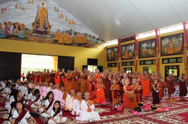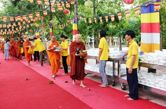 Tiếp đến, các chư Tăng tụng kinh phúc chúc đến các vị Tu SaDi,Tu Nữ và các Phật tử và trì bình khất thực theo truyền thống Phật giáo Nam Tông.