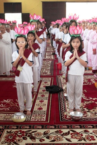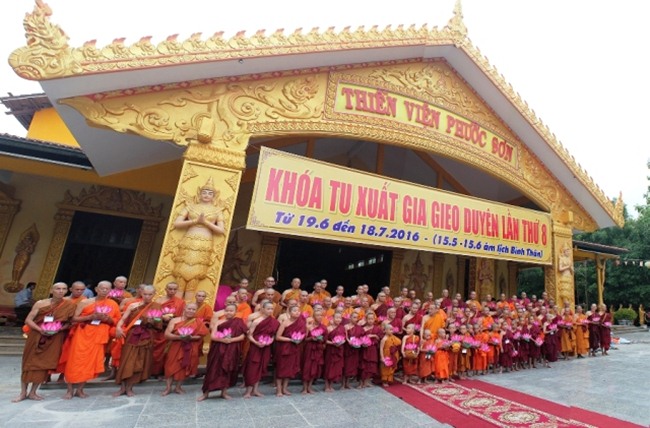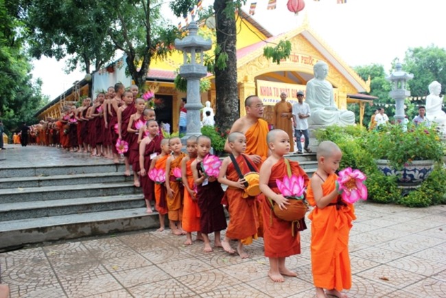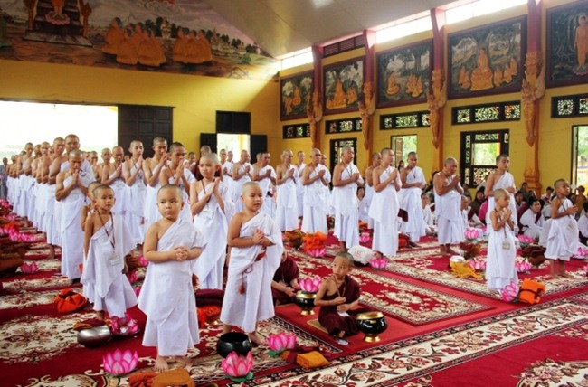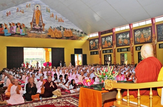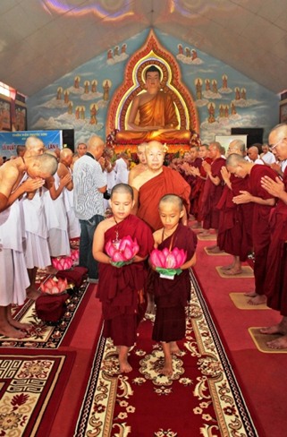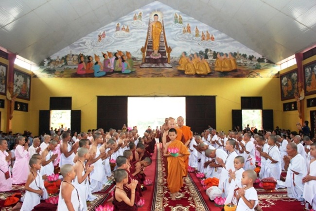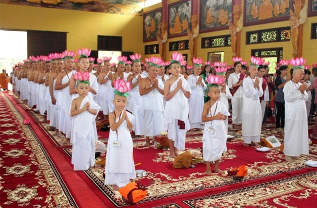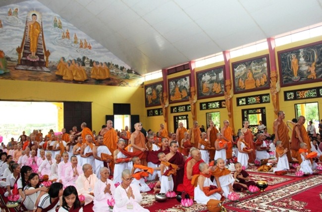 Sau khi tụng kinh lễ bái Tam Bảo là các chư tăng tụng kinh truyền giới cho các giới tử SaDi (100 vị) theo Phật giáo Nam Tông và truyền giới cho các cô Tu Nữ (37 vi).\