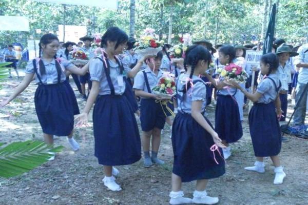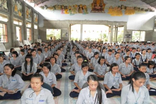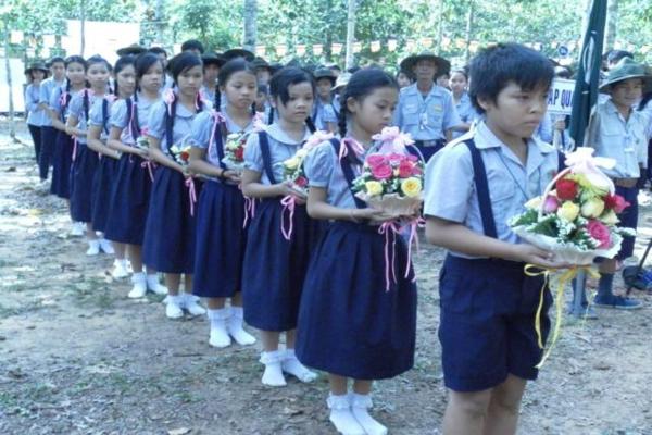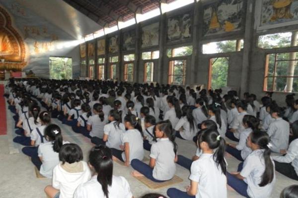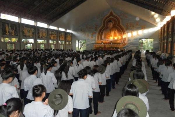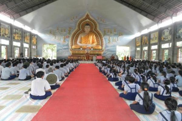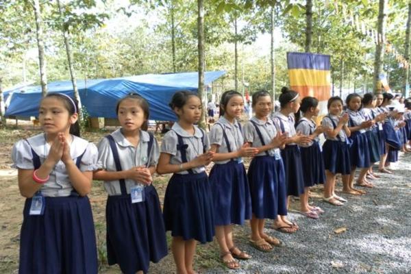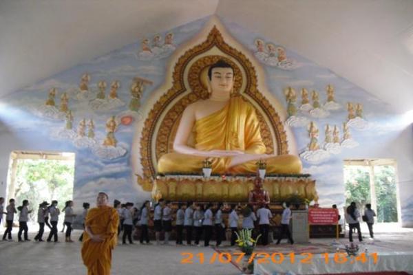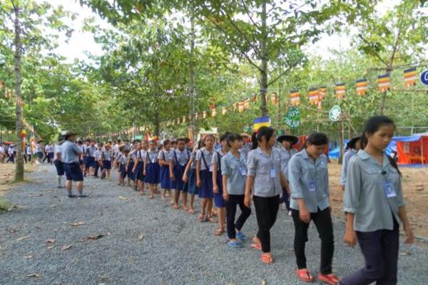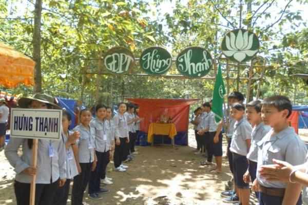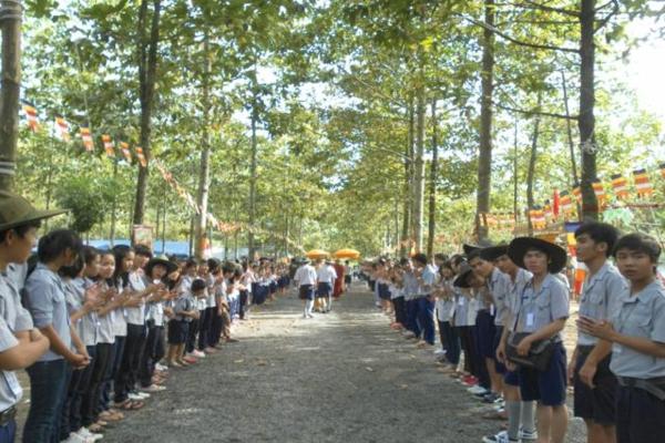 Kết thúc buổi sinh hoạt, đoàn sinh xếp hàng lễ Phật – nguyện cầu.