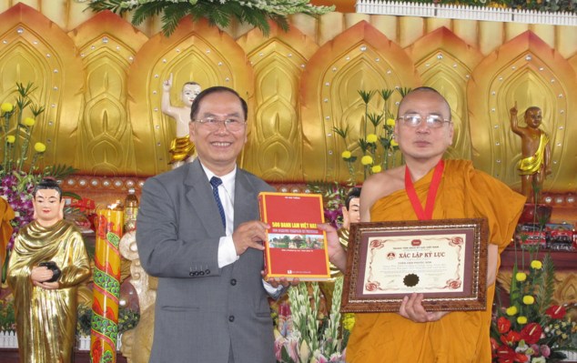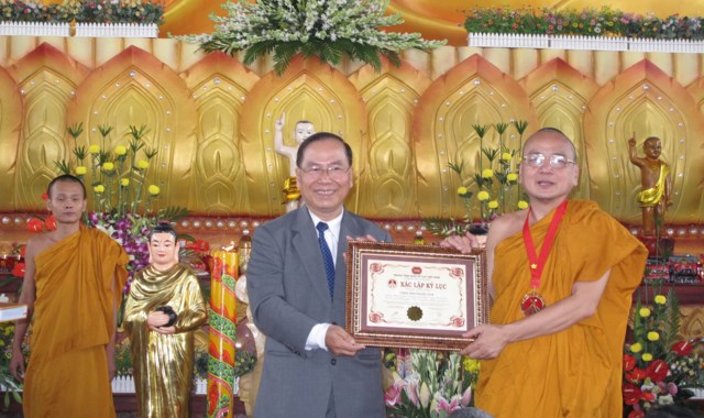 Tiếp theo, ông Võ Văn Tường, Thường trực Hội đồng Biên tập Trung tâm Sách Kỷ lục Việt Nam đã  phát biểu xác lập kỷ lục pho tượng đức Phật và trao huy hiệu kỷ lục, bằng xác lập kỷ lục Việt Nam và tặng tác phẩm 500 Danh Lam Việt Nam cho Thượng tọa Thích Bửu Chánh trong tiếng chuông trống và tiếng vỗ tay vui mừng của hằng ngàn Tăng Ni và Phật tử dự lễ.