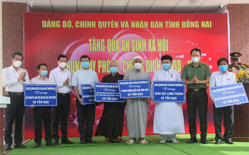Nhân dịp này, lãnh đạo tỉnh Đồng Nai và Công an tỉnh Đồng Nai cũng đã trao tặng 40 tấn gạo cho huyện Long Thành và đại diện một số tổ chức tôn giáo trên địa bàn huyện để hỗ trợ người dân, tín đồ có hoàn cảnh khó khăn.