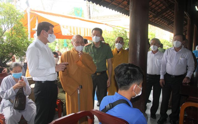 Chiều cùng ngày, đồng chí Nguyễn Hồng Lĩnh cùng các đồng chí lãnh đạo tỉnh Đồng Nai đã đến kiểm tra điểm tiêm vaccine phòng Covid-19 tại Thiền viện Thường Chiếu và thăm Giáo hội Phật giáo Việt Nam tỉnh Đồng Nai.