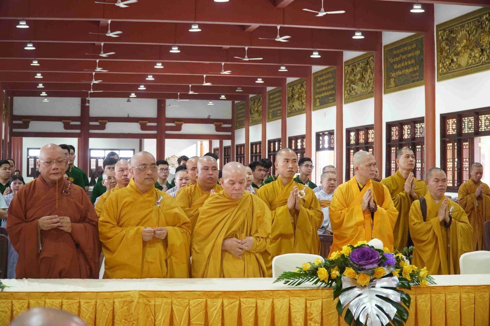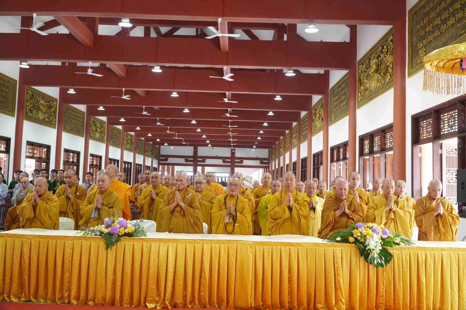 Buổi lễ trang nghiêm khép lại, Môn nhơn đề tử cùng chư Tôn đức trong Ban Quản trị đã thiết lễ cúng dường trai tăng cầu nguyện pháp giới chúng sanh, đồng thành Phật đạo.