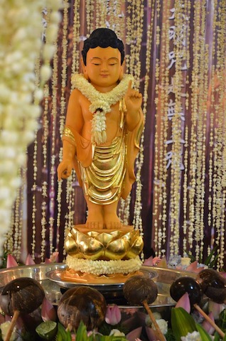 Sự trật tự, nề nếp của Phật tử trong nghi thức tắm Phật đã thể hiện lòng tôn kính trang nghiêm dâng lên cúng dường Đức Phật, cả đạo tràng cùng hoà thanh bài kệ tắm Phật: