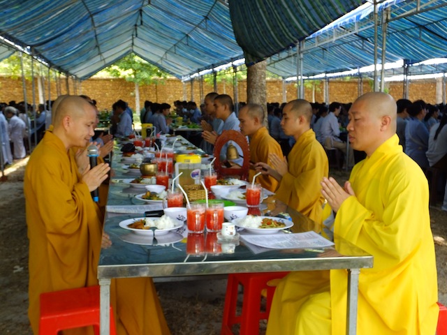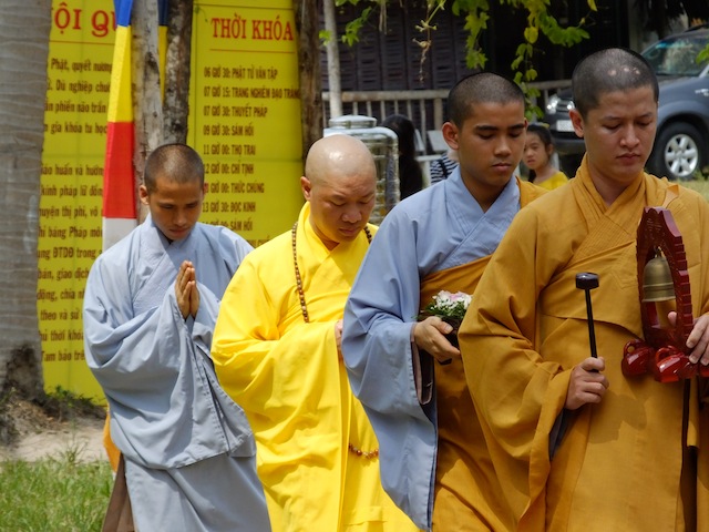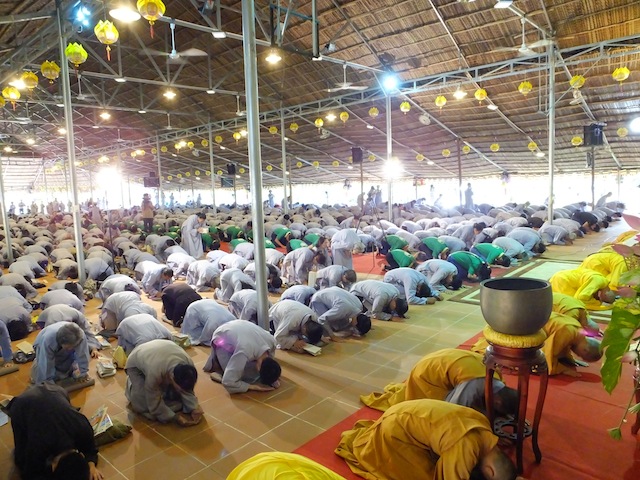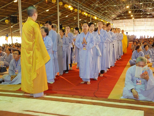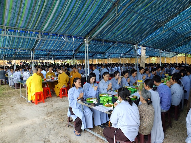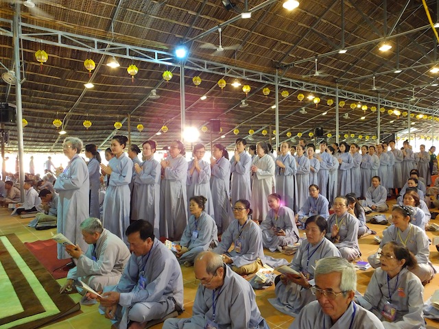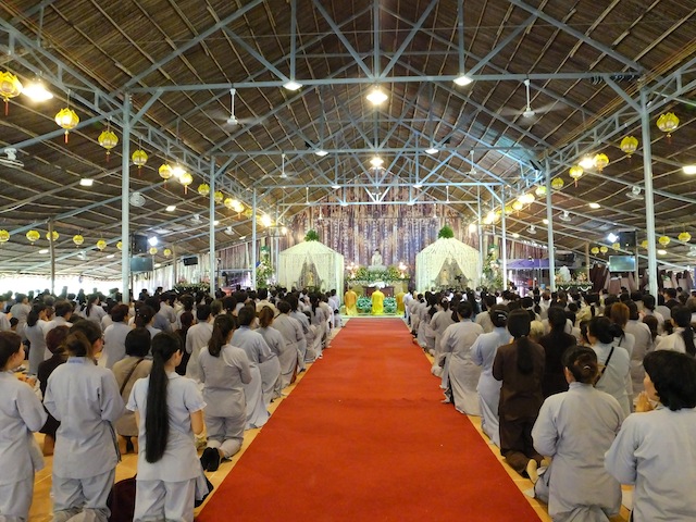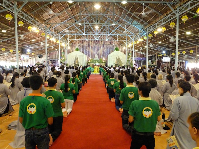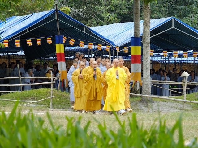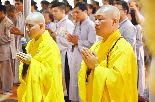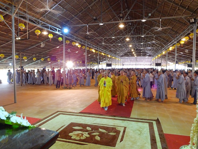 Rạng sáng ngày mùng 9 tháng 4, hai lễ đài được hoàn tất cùng với hơn 2.000 hành giả trang nghiêm chấp tay cung thỉnh Chư Tôn đức quang lâm tác lễ.