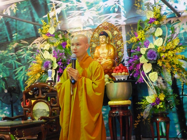 Sau khi ổn định đạo tràng, hành giả đồng trang nghiêm chấp tay niệm danh hiệu Bồ-tát Phổ Hiền để cung thỉnh thầy trụ trì – ĐĐ. Thích Thiện Thuận quang lâm pháp tòa chia sẻ Phật pháp với đề tài “Chân dung Đức Phật – phần 2”. Trong thời pháp thoại này, Thầy trụ trì đã trình bày các cứ liệu về tranh vẽ bảo tướng Đức Phật. Thánh tượng của Đức Phật đã có từ thời Đức Phật, nhưng tranh vẽ Đức Phật thì vẫn chưa thấy cứ liệu nào trong kinh điển. Tuy nhiên, tại Viện bảo tàng Anh có trưng bày một bức tranh được ghi nhận là do Tôn giả Phú Lâu Na vẽ Đức Phật năm 41 tuổi. Theo kinh A Hàm, khi Đức Phật nhập Niết Bàn, Tôn giả Ma Ha Ca Diếp bàn với đại thần Vũ Á mời danh họa vẽ chân dung Đức Phật dâng lên vua A Xà Thế để vua bớt bi thương.