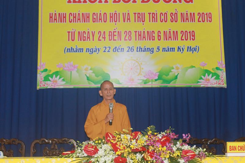 TT. Thích Thiện Thống ban lời đạo từ đến các học viên là Tăng Ni trụ trì các cơ sở tự viện trong tỉnh, với số kiến thức được nghe và các văn bản hành chánh sẽ giúp ít cho trụ trì hiểu về cách lãnh đạo trong phạm vi trụ trì, thực hiện đúng theo tôn chỉ của đức Phật và Hiến chương, luật pháp luật của nhà nước giúp cho Giáo hội làm tốt các Phật sự địa phương hoạt động tốt. Đồng thời tán dương Ban trị sự GHPGVN tỉnh Đồng Tháp đã tổ chức 04 năm liên tục và tiếp tục khai giảng các khóa học trong thơi gian tới.