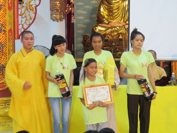 Tuy năm nay không đặt nặng tinh thần thi đấu mà chủ yếu hướng khóa sinh đến sự đoàn kết, phát huy sức mạnh vốn có trong mỗi chương trình của khóa tu, nhưng BTC vẫn trao quà cho những đơn vị xuất sắc để khuyến khích tinh thần. Những phần quà trao tay, lời cảm ơn của các trại sinh dâng lên quý thầy cô trong BTC và quý vị Phật tử đã hỗ trợ công sức để khóa tu diễn ra thành công tốt đẹp cũng báo hiệu giờ chia tay đã cận kề. Những bàn tay nắm chặt hơn như muốn níu thời gian chậm lại, những giọt nước mắt tuôn rơi khi giờ phút chia xa mỗi lúc gần hơn…