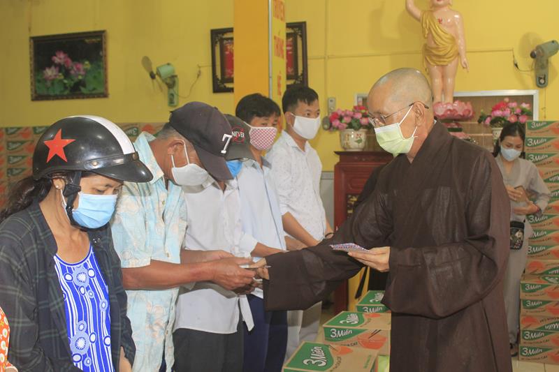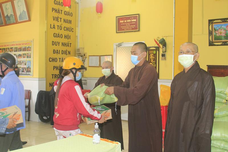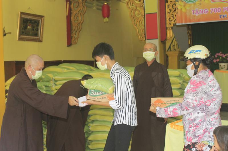 Theo đó, 700 phần quà được chư Tôn đức, các cấp lãnh đạo chính quyền trao tận tay cho các hộ khó khăn, hộ nghèo của 09 phường xã trong Thành phố Sa Đéc và 01 phần cho người dân huyện Châu Thành. Mỗi phần quà trị giá 300 ngàn đồng bao gồm: gạo, mì, các nhu yếu phẩm, phong bì. Bên cạnh đó, BTS Phật giáo Đồng Tháp cũng gửi tặng 100 phần quà đến cán bộ biên phòng các tuyến biên giới thuộc tỉnh Đồng Tháp đang làm nhiệm vụ chốt chặn biên giới phòng chống Covid-19.